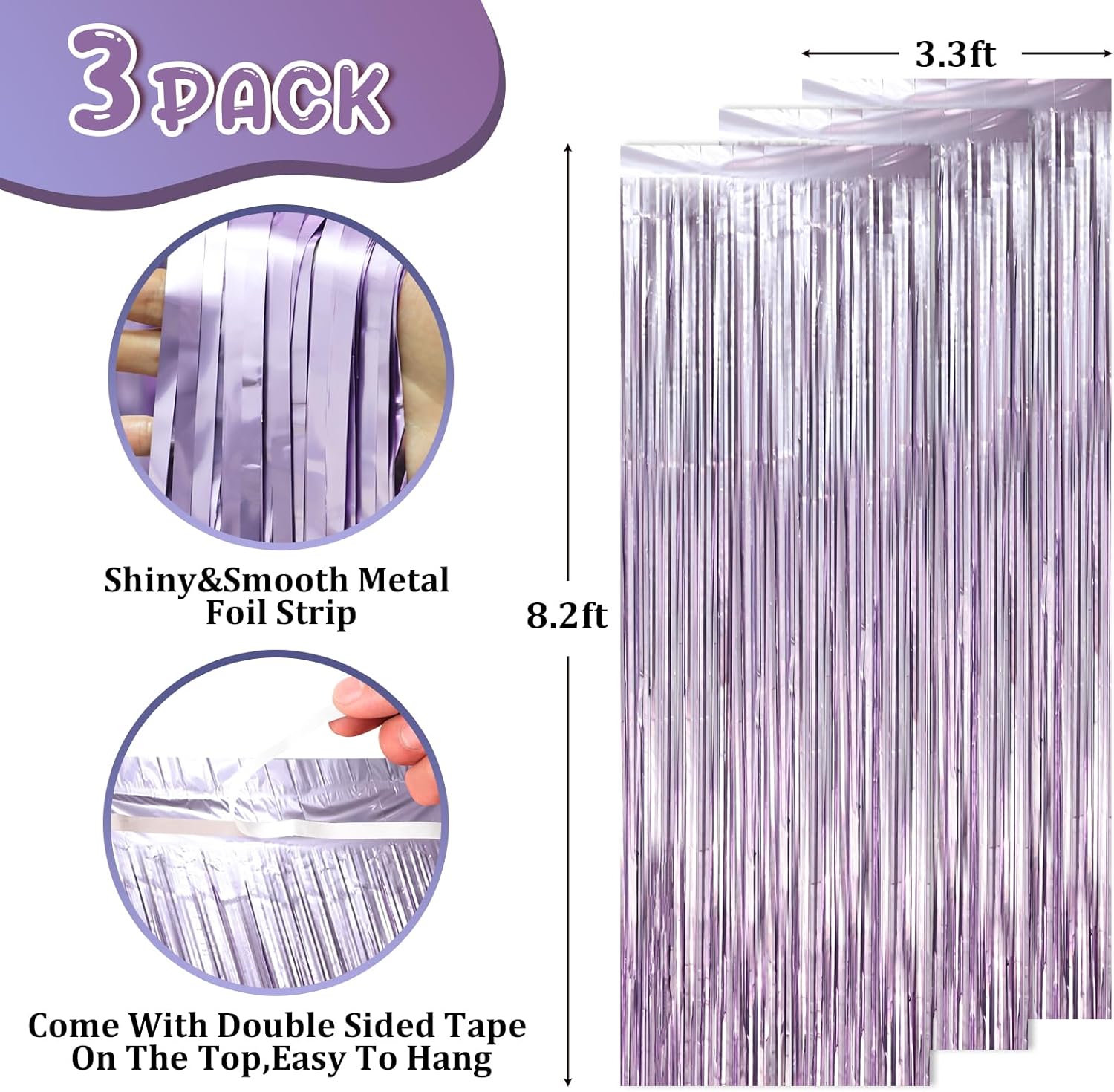 • Package Included: 3 packs of light purple foil fringe curtains, the size of the foil curtain is 3.3*8.2ft. It's long enough to fit any occasion
