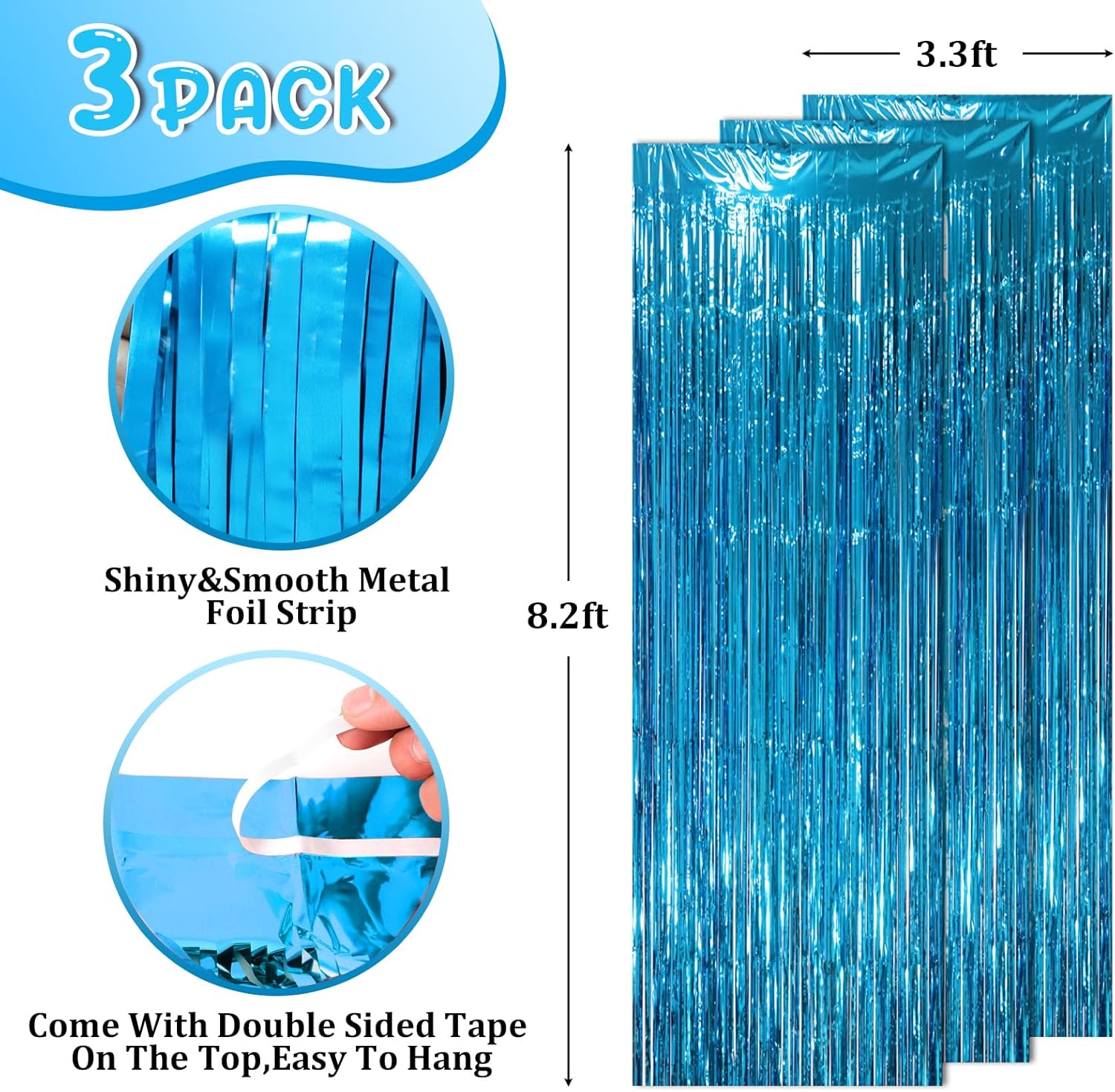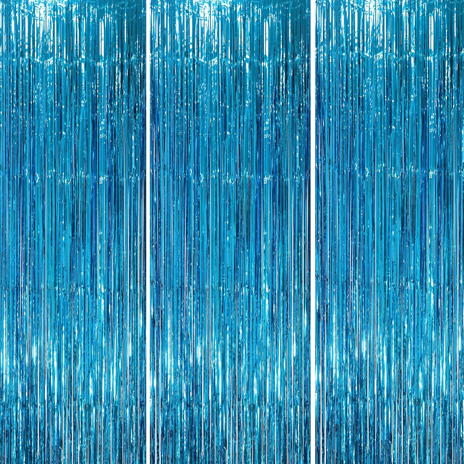 • Package Included: 3 packs of retro blue foil fringe curtains, the size of the foil curtain is 3.3*8.2ft. It's long enough to fit any occasion