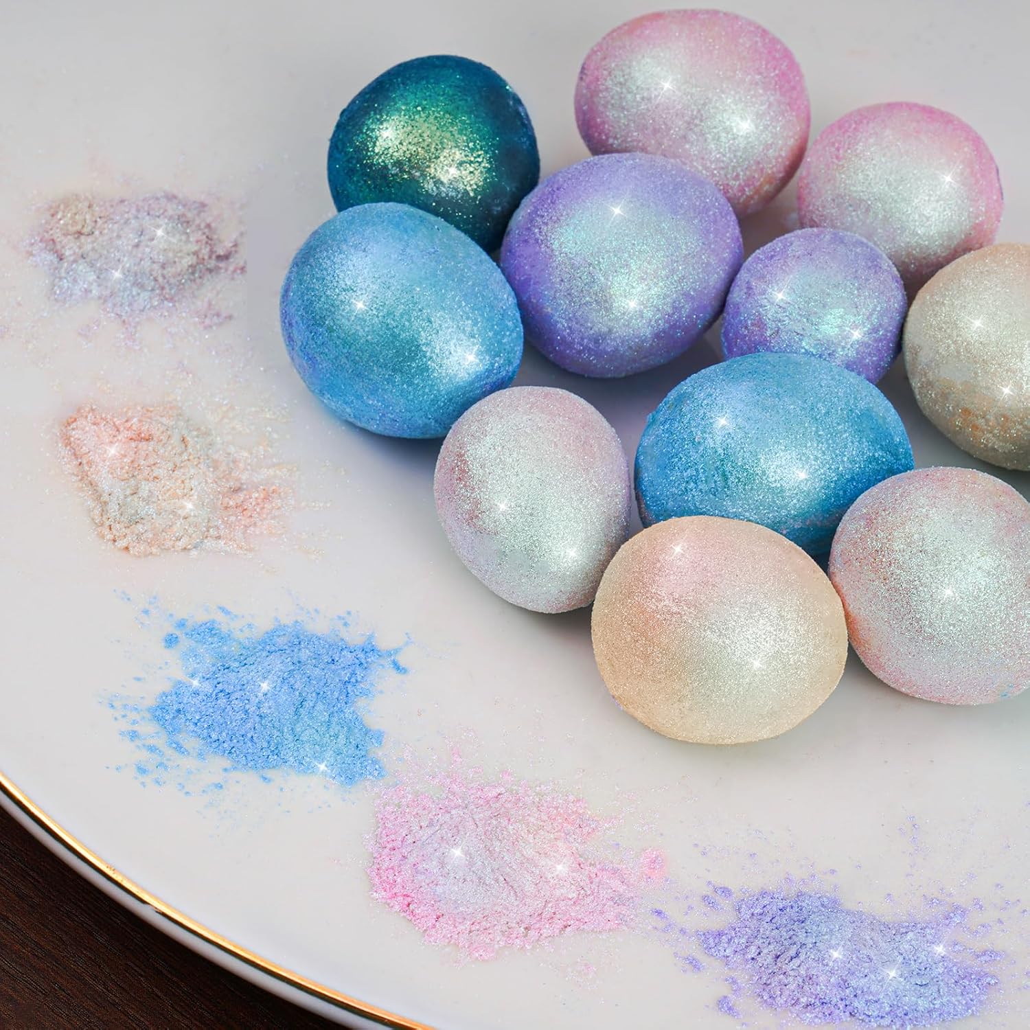 • ✔️【Easy to Use】Specially developed for food decoration and craft industries, this luster dust produces realistic looks by highly pigmented colors with a metallic finish. The pretty fine grain is more convenient for painting. To add glimmer and sparkle to your creations, simply sprinkle or dry brush the luster glitters on them. This product adheres very well to both wet and dry mediums. Attention: Seal and store glitter powder in a cool and dry place after use. Do not expose to excessive heat.
