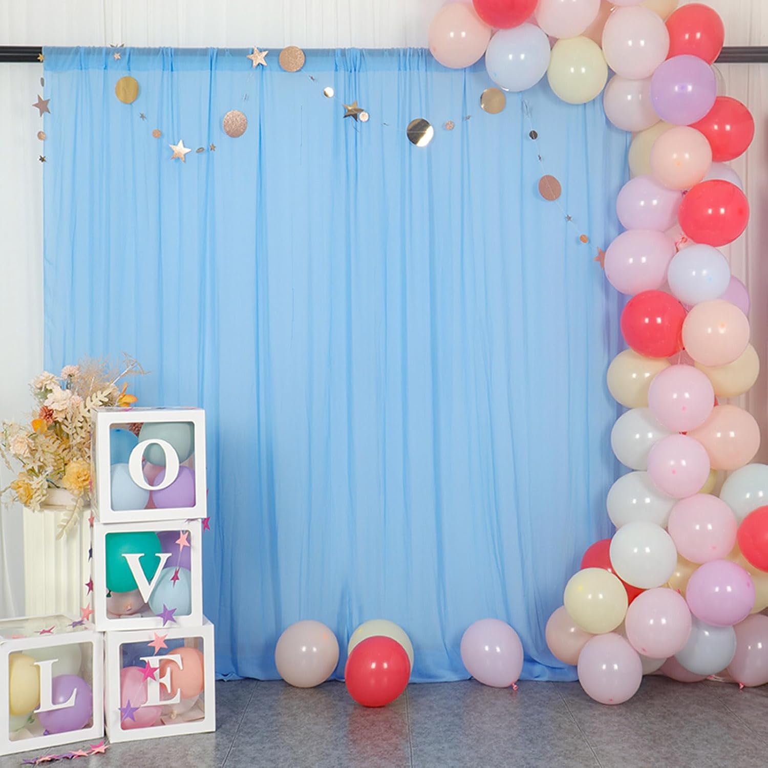 • ★ SHEER CHIFFON CURTAINS :Includes 2 Panels Width 58 Inches (total width 116 inches for 2 panels) chiffon backdrop curtain Sky Blue color--Different electronic devices seeing the image colors will different . Please refer to the actual product for specific color.