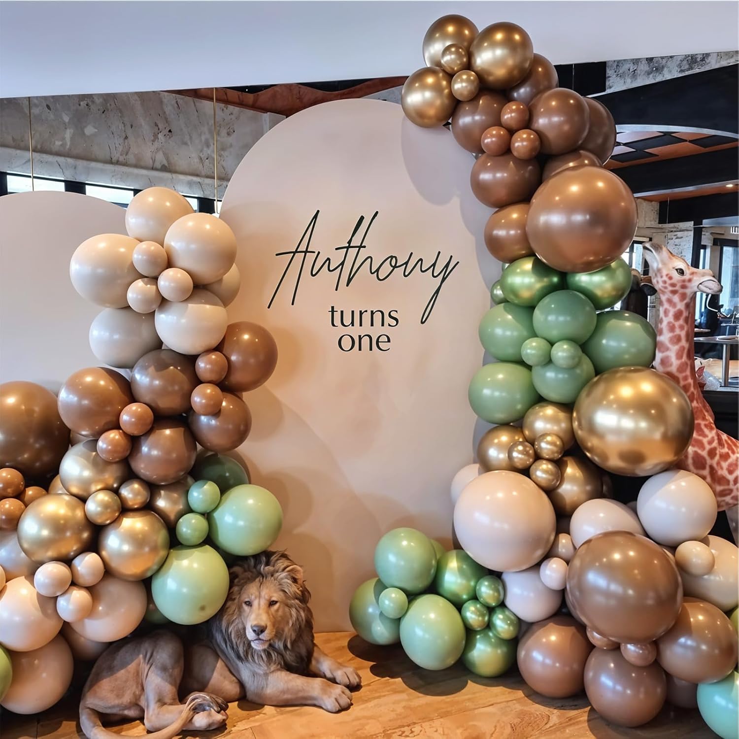 • Versatile scene application: Our jungle woodland party balloons can create a joyful holiday atmosphere and immerse you and your family in the party world! The sage green brown gold balloons are perfect for kids boys girls eucalyptus camo army hunting theme party decoration, jungle safari party decor, birthday party, baby shower, gender reveal, bachelorette christmas, new year eve party decorations.