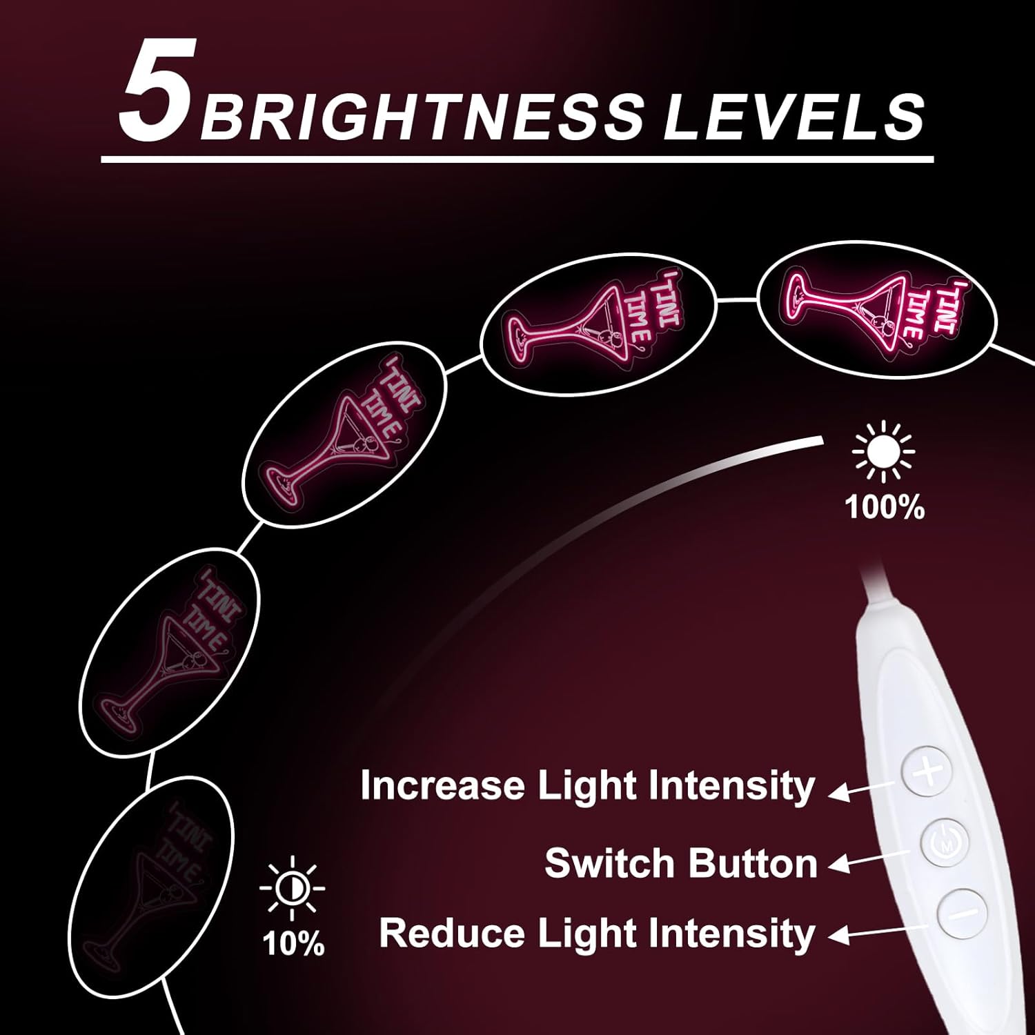 • Easy to Use: The LED neon light features USB connector and dimmable settings, allowing you to freely adjust the brightness to suit the atmosphere you desire. You can power the neon LED sign with a mobile power bank, USB ports, computers and so on