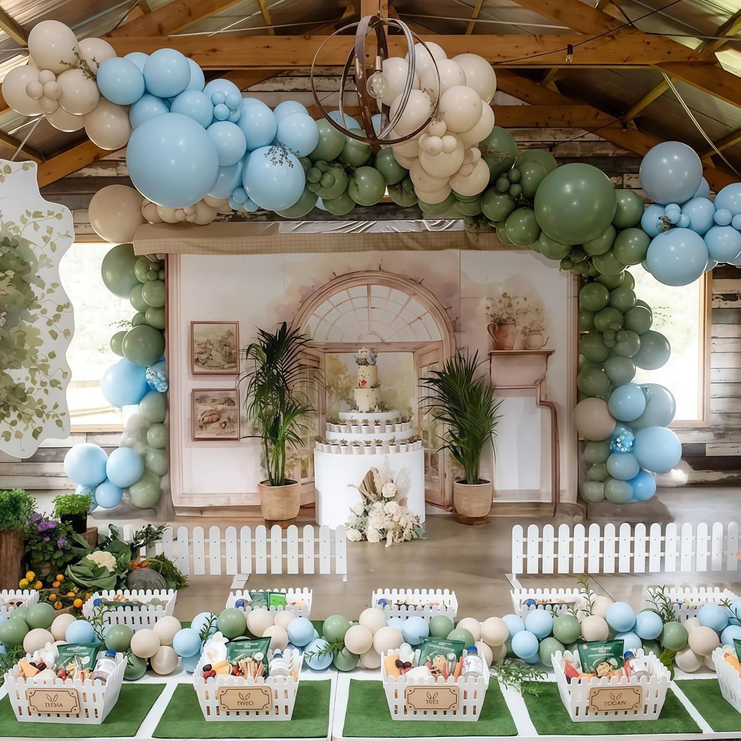 • High Quality Materials: This blue and beige balloons is made of natural latex, and the green and blue balloons are thick and durable, which means they will not break easily and last longer. In addition, all green and cream balloons have been strictly tested to ensure that they are not only durable but also safe for children.