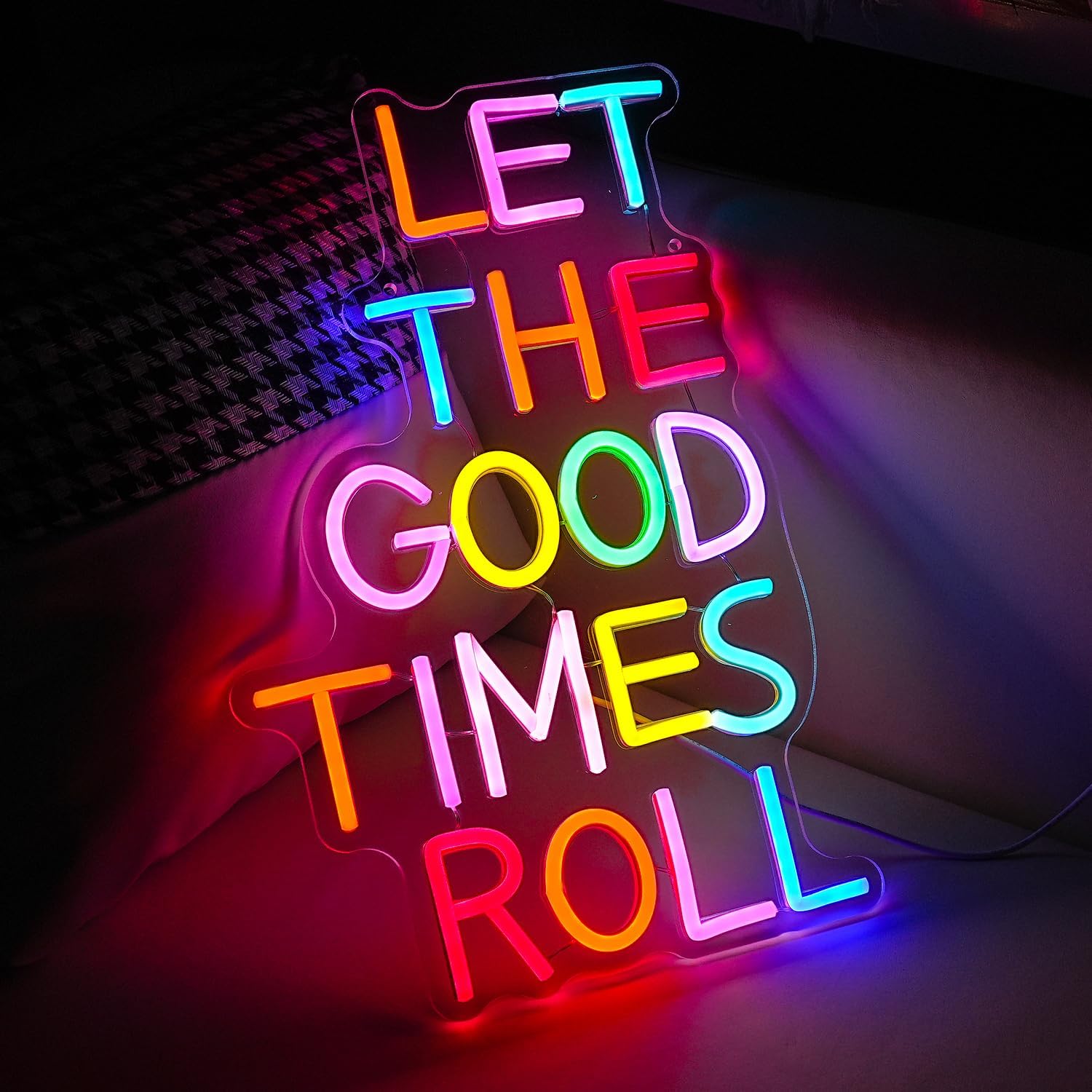 Let The Good Times Roll Neon Sign Good Times Sign Neon Light for Wedding Decor Colorful Words Led Light Sign for Bedroom Bar Party Wall Decor Dimmable 16.5 * 10.6 In Neon Sign