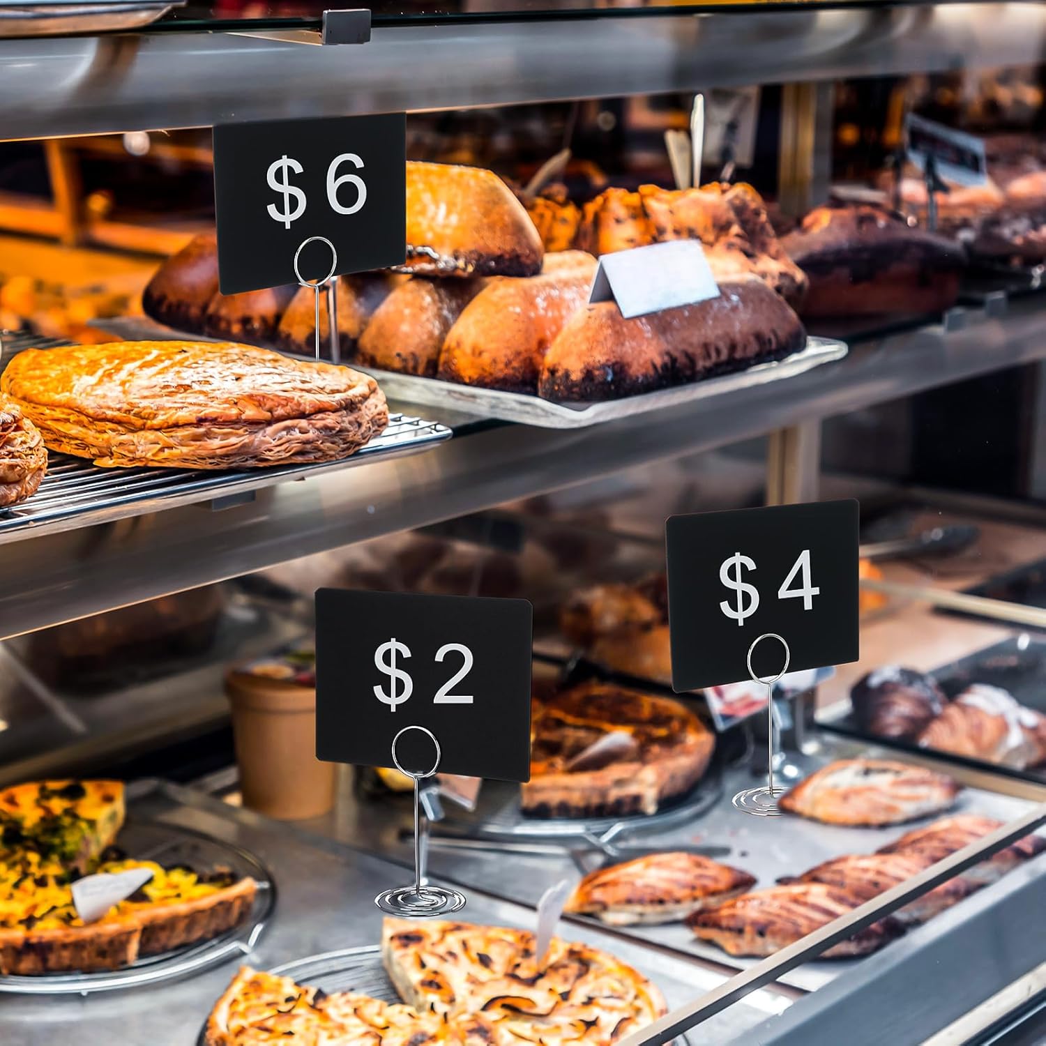 • Easy Usage: the mini chalkboard sign providing a smooth writing surface; You can easily wipe them clean when you need other messages or labels; The metal ring at the top of the wire table stand can easily hold the card, while its wide base ensures it remains stable