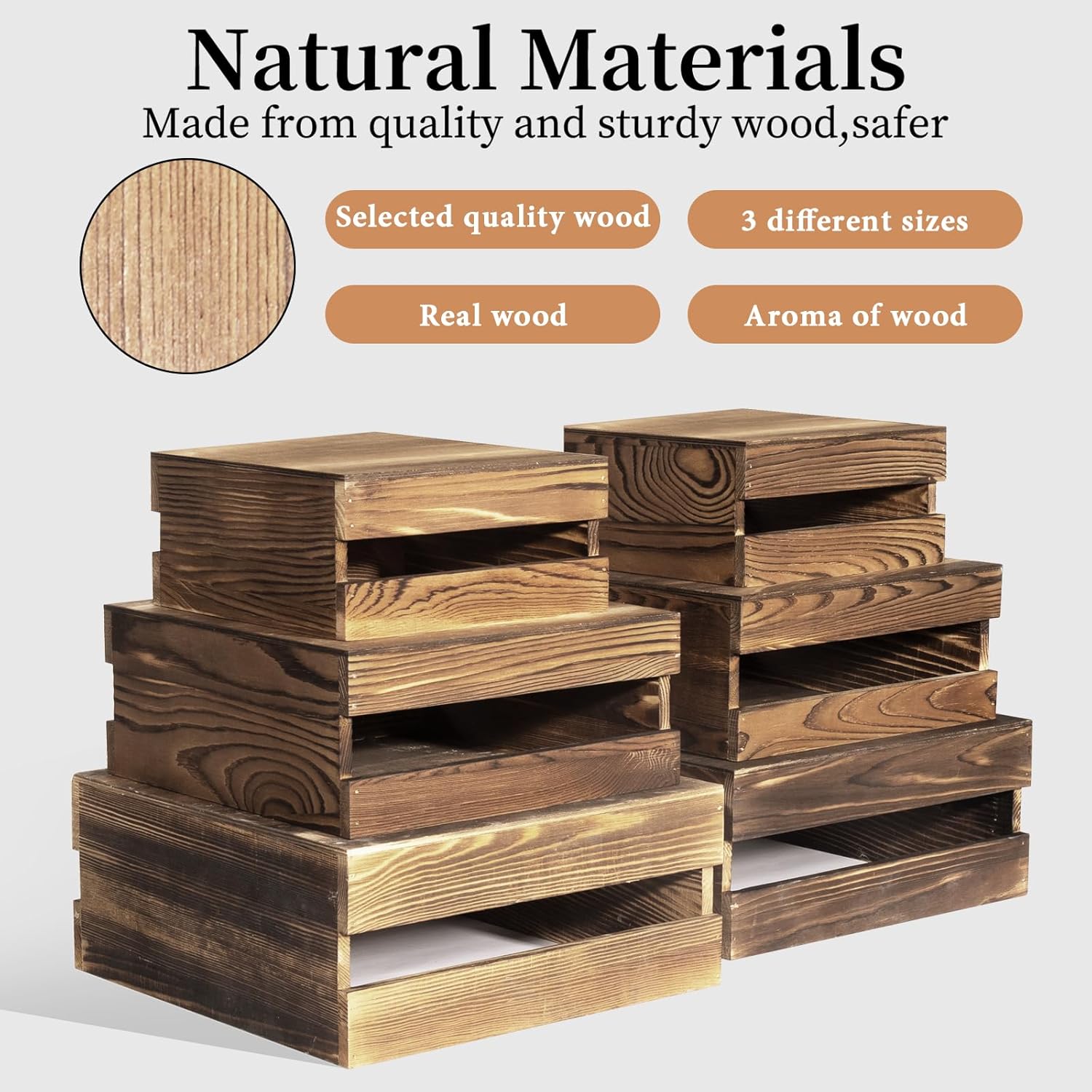 • Versatile Sizes for Layered Elegance: Our wooden stackable display boxes are carefully sized for multi-layer display, Large: 8.0x8.0x4.6 inches; Medium: 7.0x7.0x4.0 inches; Small: 6.5x6.5x3.5 inches, create stunning visual tiers and levels of display space that captivate every guest