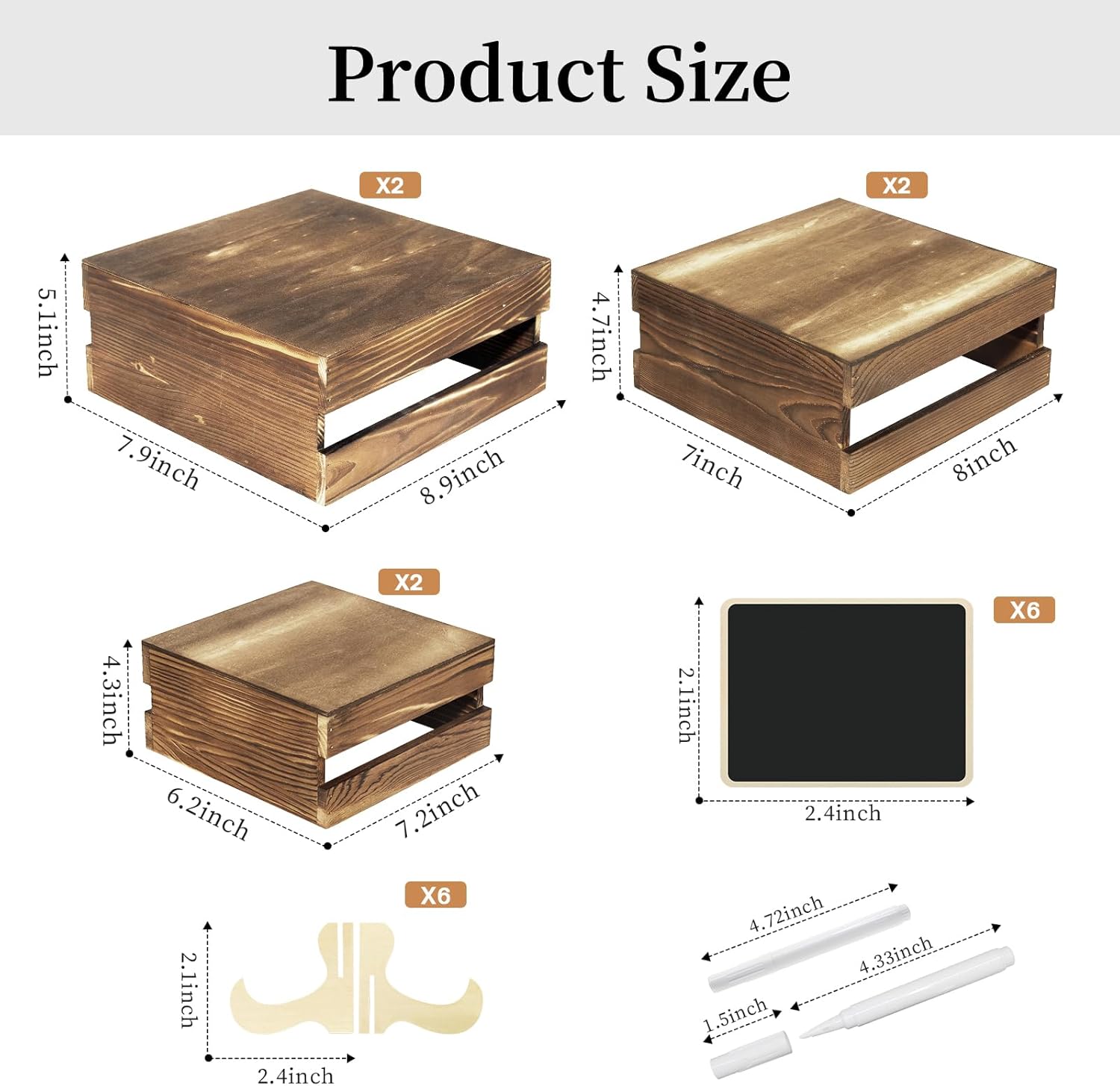 • Your Party's Sweet Companion: You will receive a set of 6 wooden cake stand risers (available in 3 sizes), 6 wooden signs and 2 pens, enough quantity and different sizes to meet the needs of different sizes of cakes, snacks and desserts for display. The wooden signs can be used to write down hints for ease of use while adding elegance to your dessert table.These wooden stackable display boxes will not take much displaying space