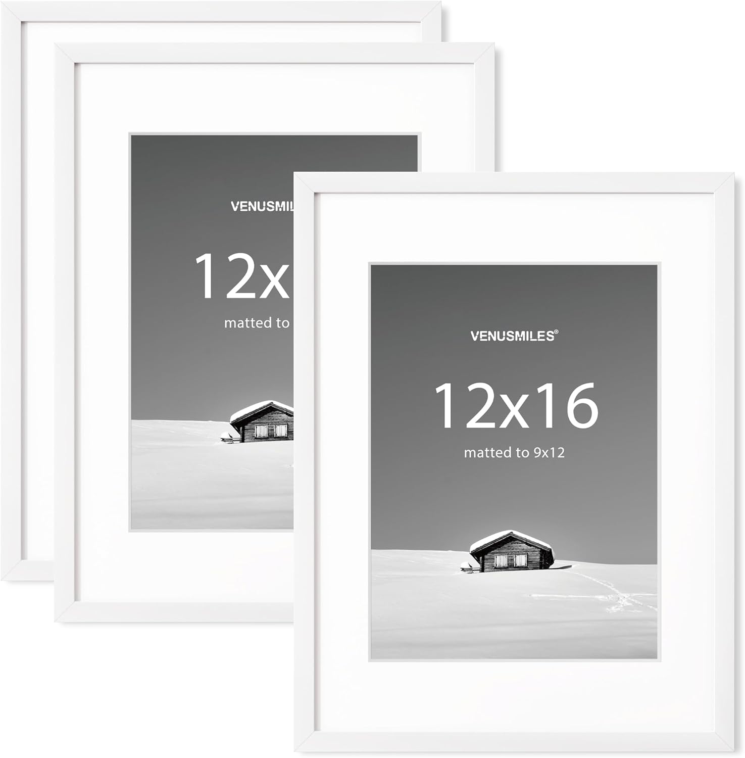 12x16 inch Picture Frame, 12x16 Photo Frames with 8.5x11 Removable Mat - High Definition Plexiglass - Vertical and Horizontal Display - Wall Hanging Frame - White, 3 Pack