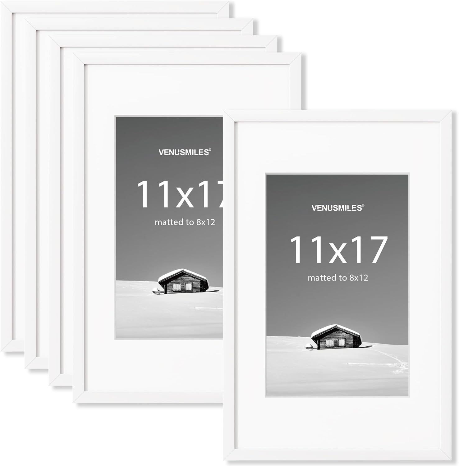 11x17 inch Picture Frame, 11x17 Photo Frames with 8x12 Removable Mat - High Definition Plexiglass - Vertical and Horizontal Display - Wall Hanging Frame - White, 5 Pack