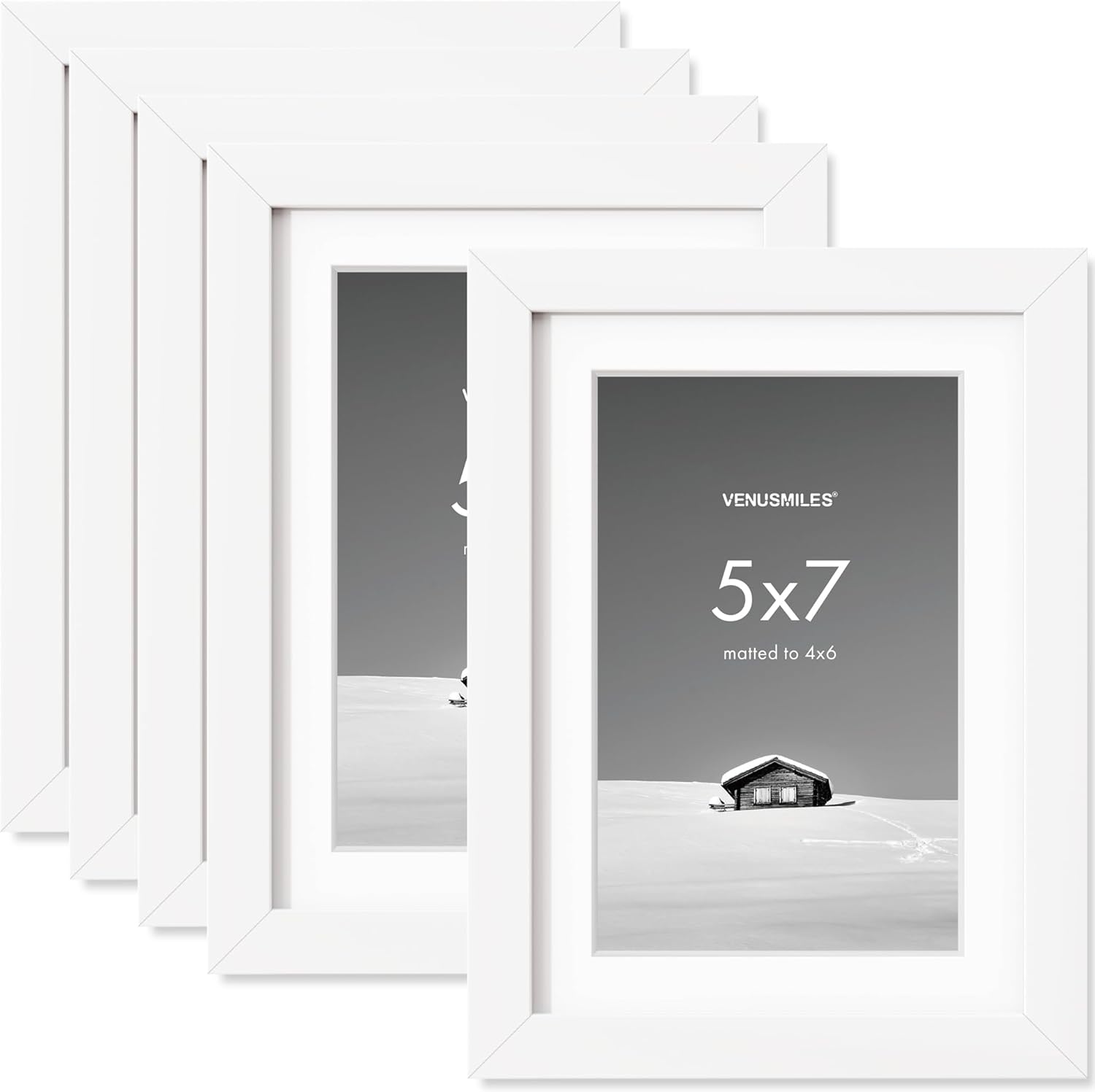5x7 inch Picture Frame, 5x7 Photo Frames with 4x6 Removable Mat - High Definition Plexiglass - Vertical and Horizontal Display - Wall Hanging Frame - White, 5 Pack
