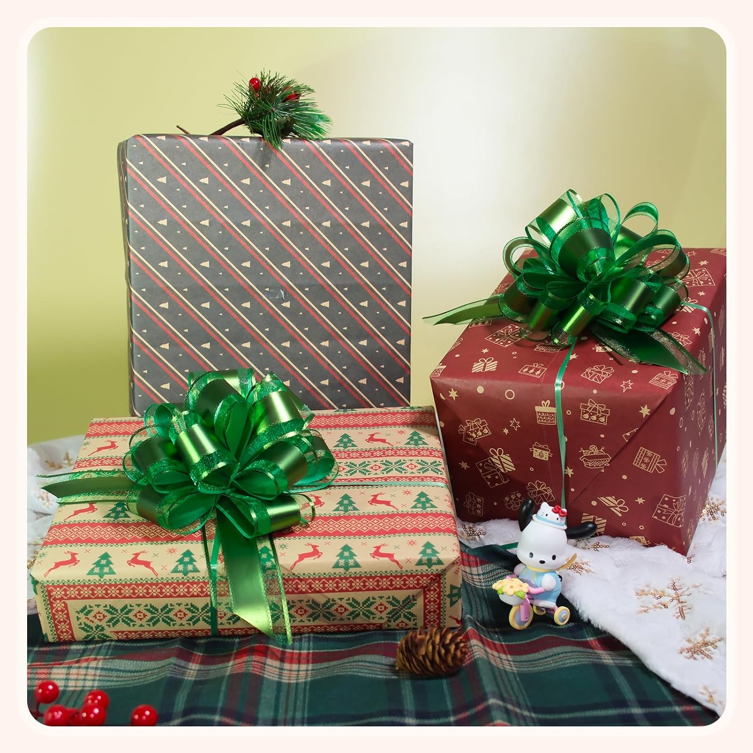 6 PCS 6 Inch Organza Green Pull Bows - Perfect for Gift Wrapping, Wedding Decor, Car Bows, Birthday Parties, Christmas, and Valentine's Day