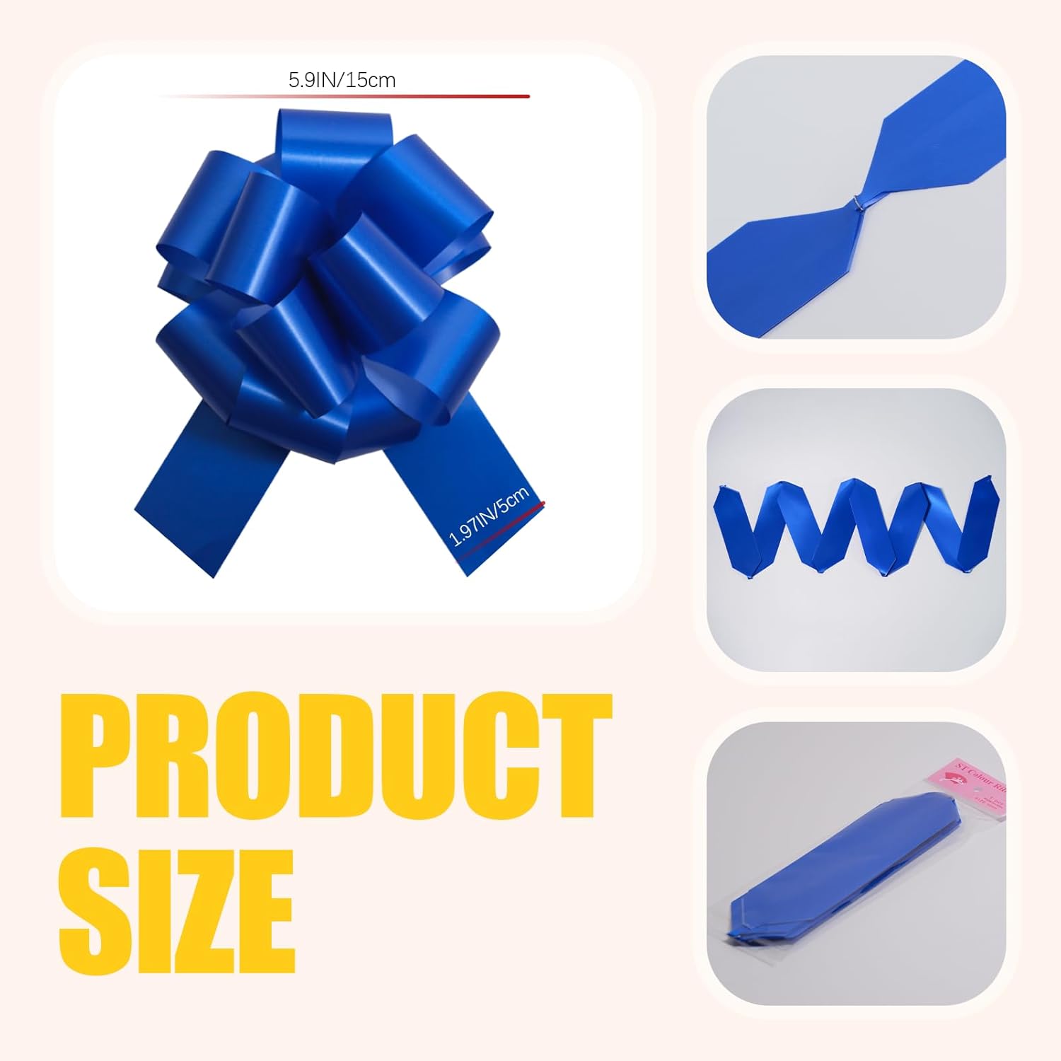 • Size: Drawstring bows are not easy to tear, suitable for many occasions, each one is 6 inches in diameter after pulling apart and the ribbon is 2 inches in width, lovely appearance and the size is suitable for gift decoration.