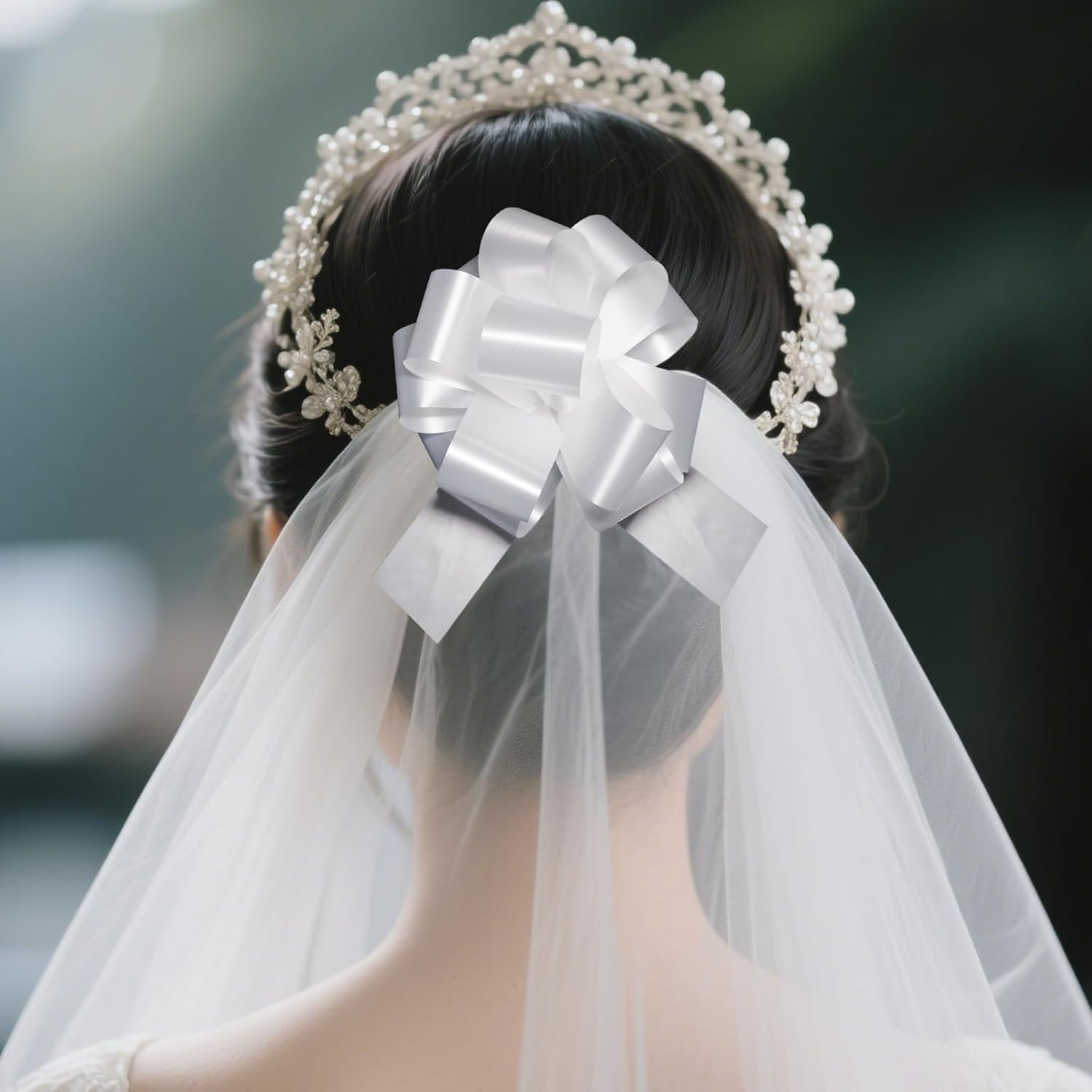 6 PCS 6 Inch White Pull Bows - Perfect for Gift Wrapping, Wedding Decor, Car Bows, Birthday Parties, Christmas and Valentine's Day