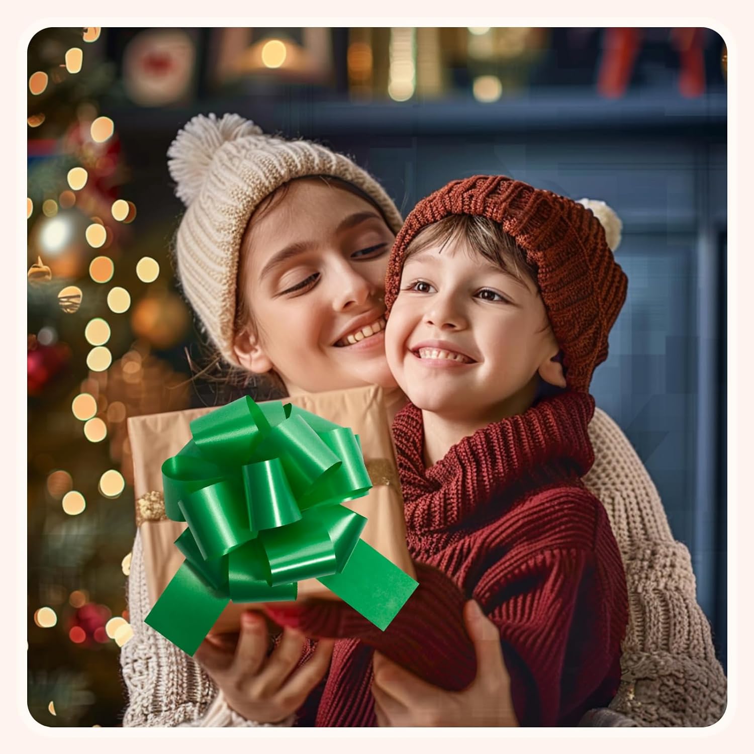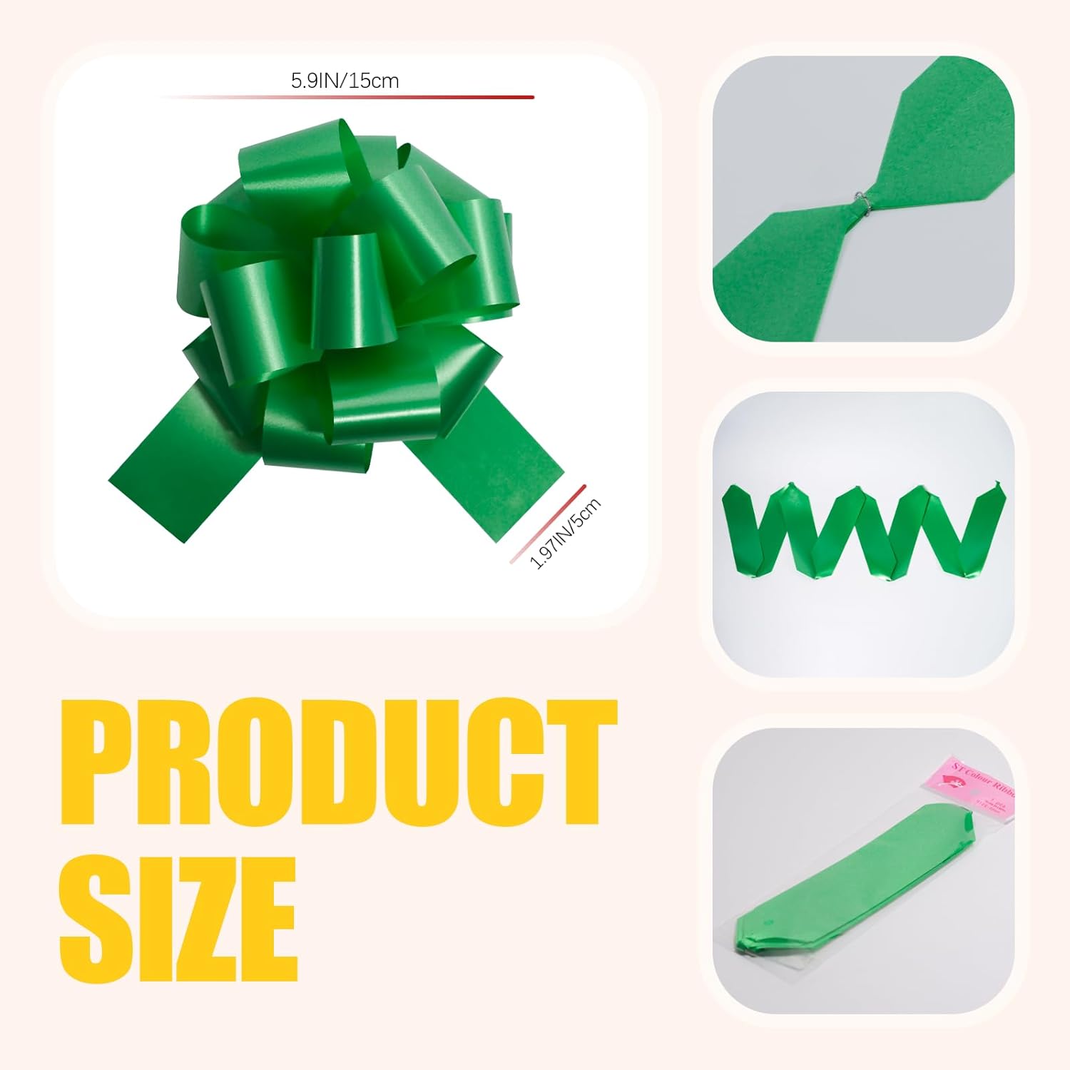 6 PCS 6 Inch Green Pull Bows - Perfect for Gift Wrapping, Wedding Decor, Car Bows, Birthday Parties, Christmas and Valentine's Day