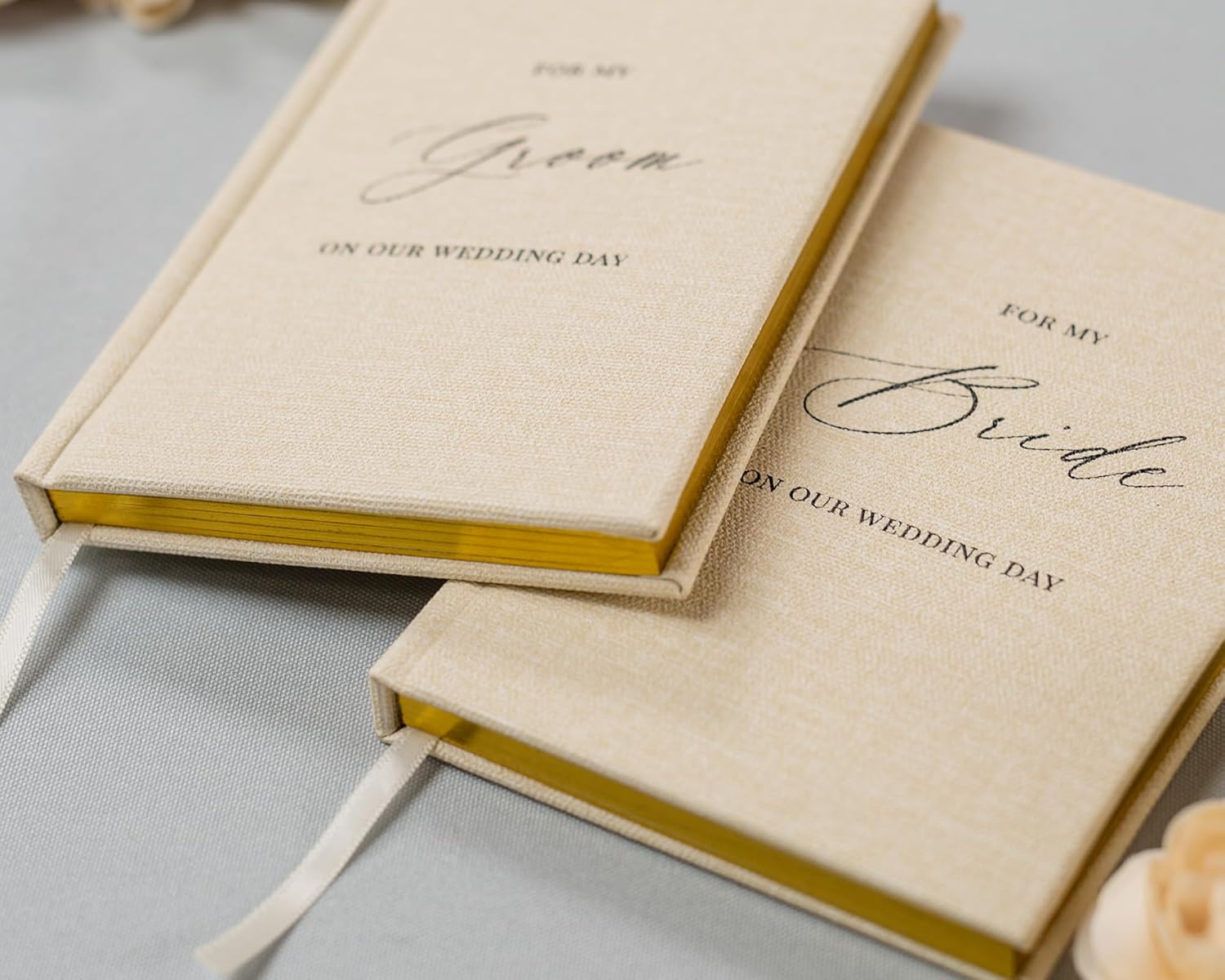 • Each vow book is meticulously crafted with 140 gsm paper, ensuring durability and a luxurious feel. Each book contains 80 lined pages with gold gilded edges, adding a touch of elegance to your wedding day prop or bridal shower gift.