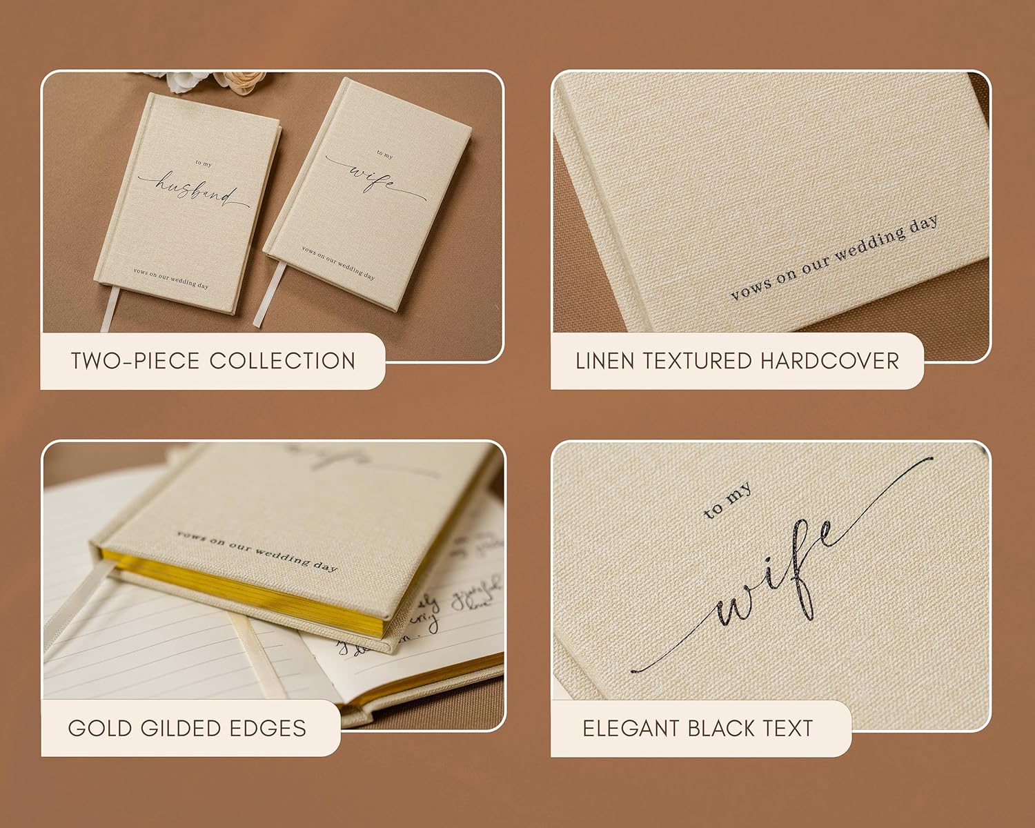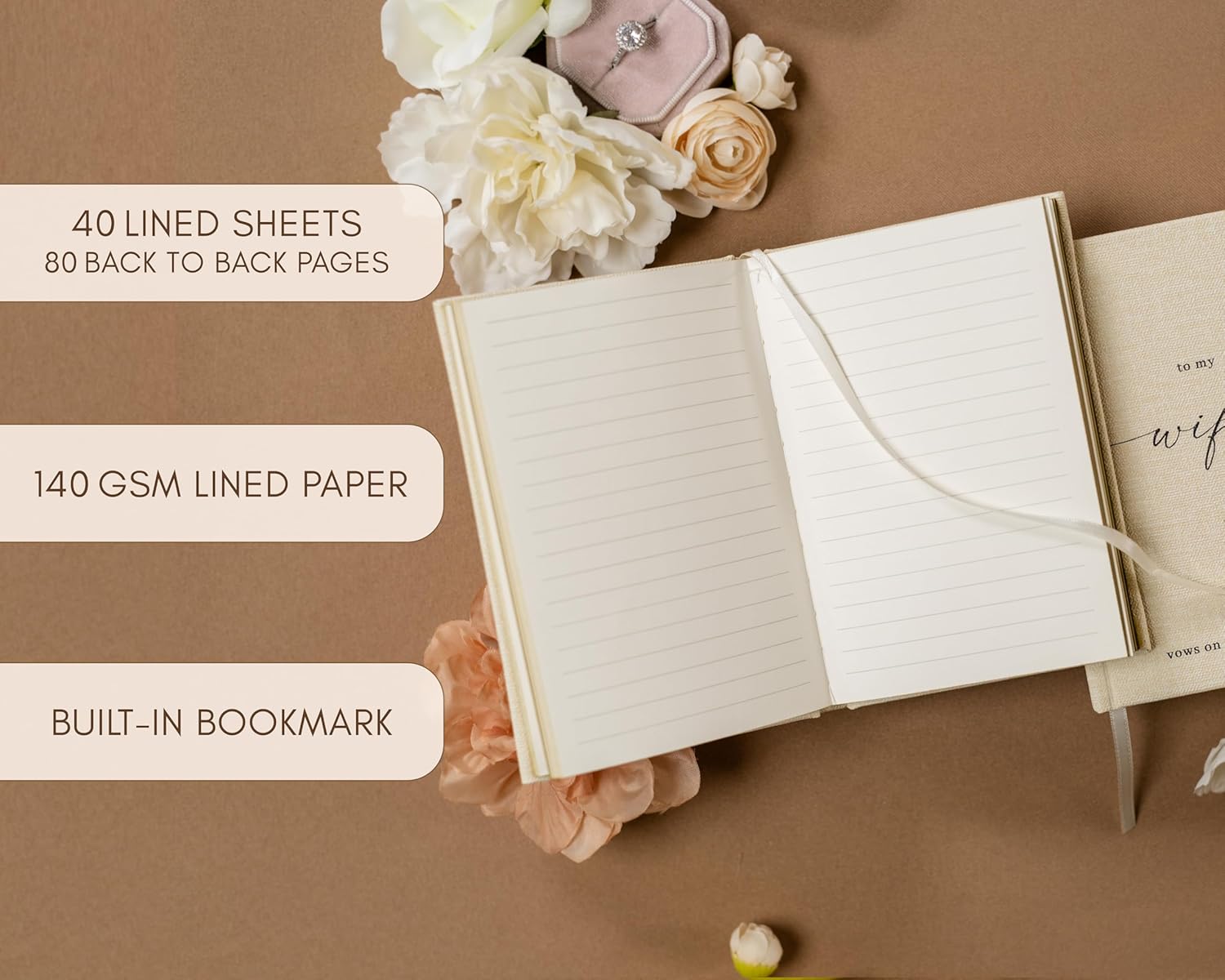 • Each vow book is meticulously crafted with 140 gsm paper, ensuring durability and a luxurious feel. Each book contains 80 lined pages with gold gilded edges, adding a touch of elegance to your wedding day prop or bridal shower gift.