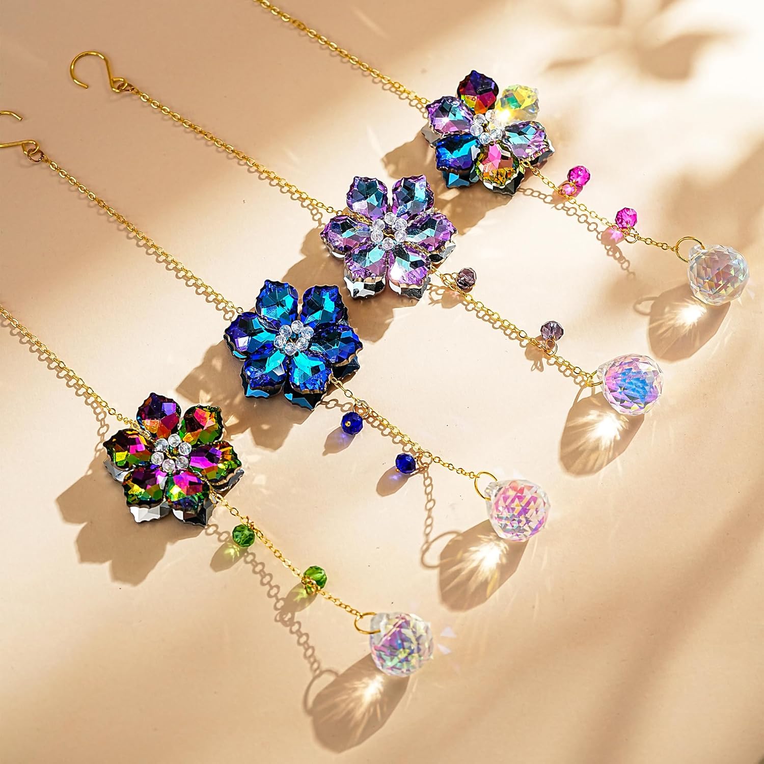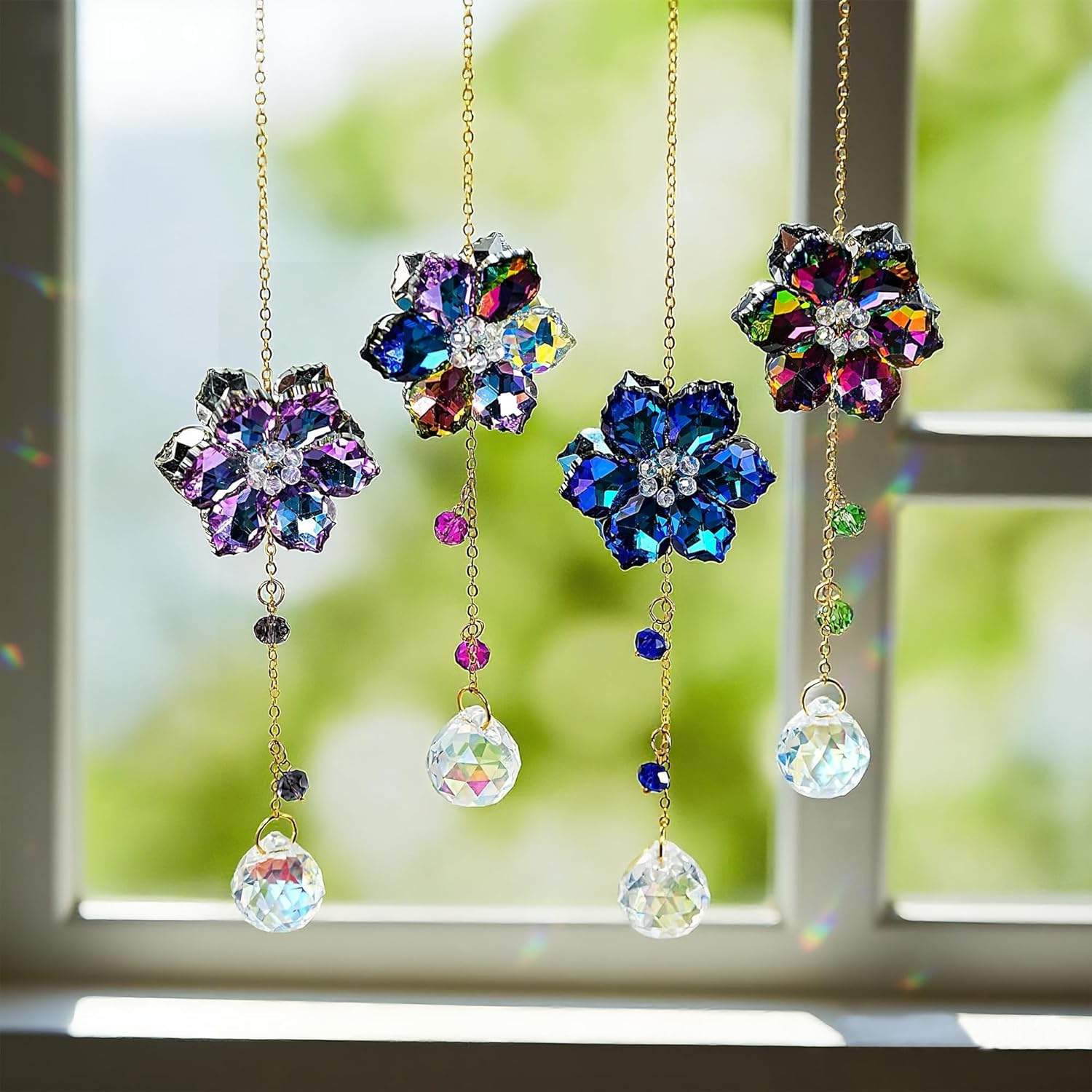 • Crystal Flower Suncatcher (4-Pack): Four colorful crystal flowers catch the sun, filling your space with vibrant rainbows
