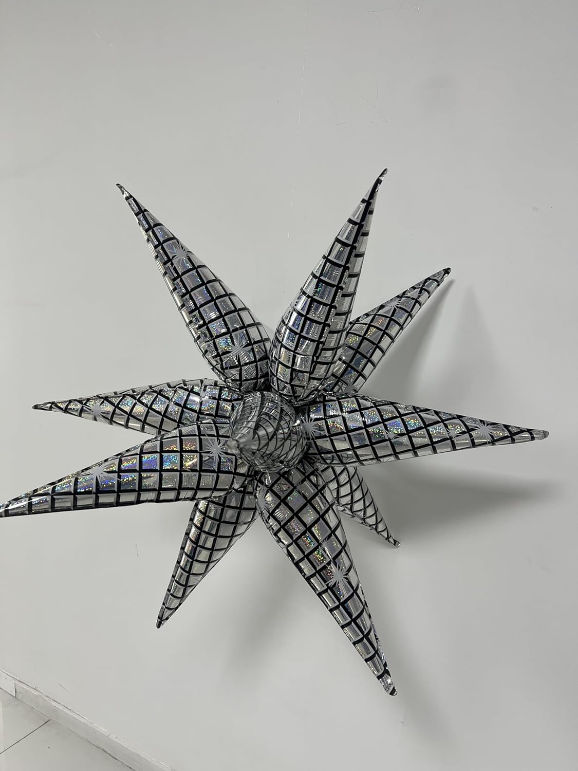 3pcs 32inch Iridescent disco explosion star foil balloons.Black white Foil Cone Star burst Balloons for disco Birthday Bachelorette Party decorations.