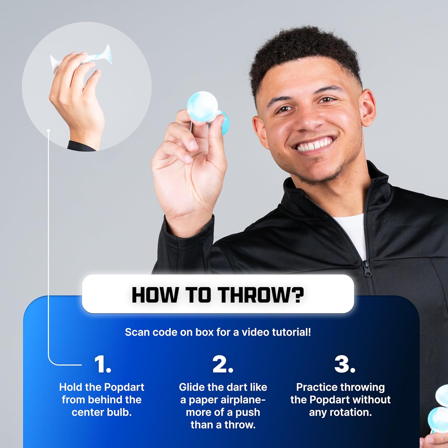 • WHERE CAN I PLAY? Our compact sets can be played wherever you go, indoors or outdoors. Popdarts stick best to smooth surfaces like a countertop, refrigerator, window, car windshield, glass door, surfboard – be creative!
