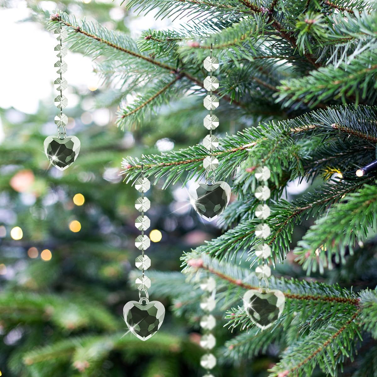 • Elegant Hanging Ornaments: Designed with teardrop acrylic prisms, combined with clear plastic icicle drops adorned with crystal beads, creating a festive and romantic ambiance. Ideal for decorating Christmas trees, centerpieces, chandeliers, windows, and various corners of your home.