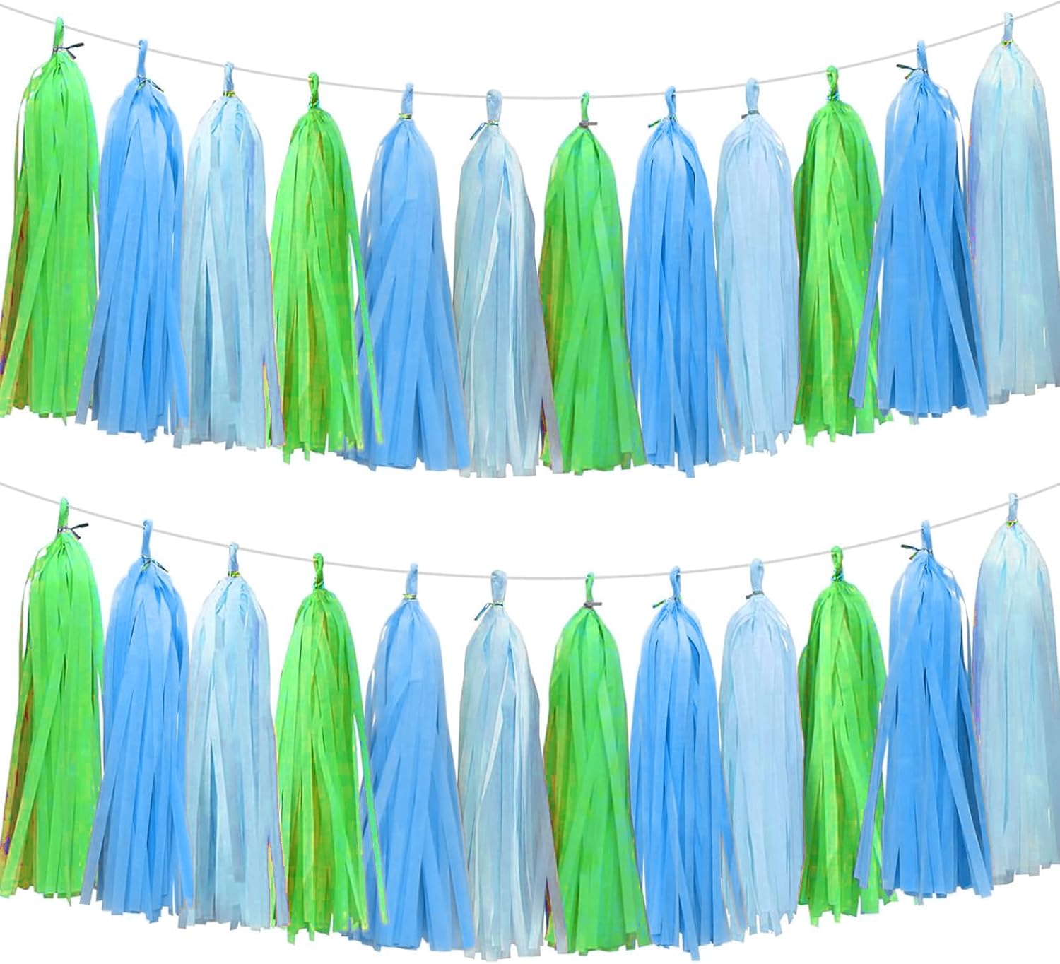 Blue Light Blue and Green Tassel Garland Banner Paper Tassels for Party Decorations,Pack of 15