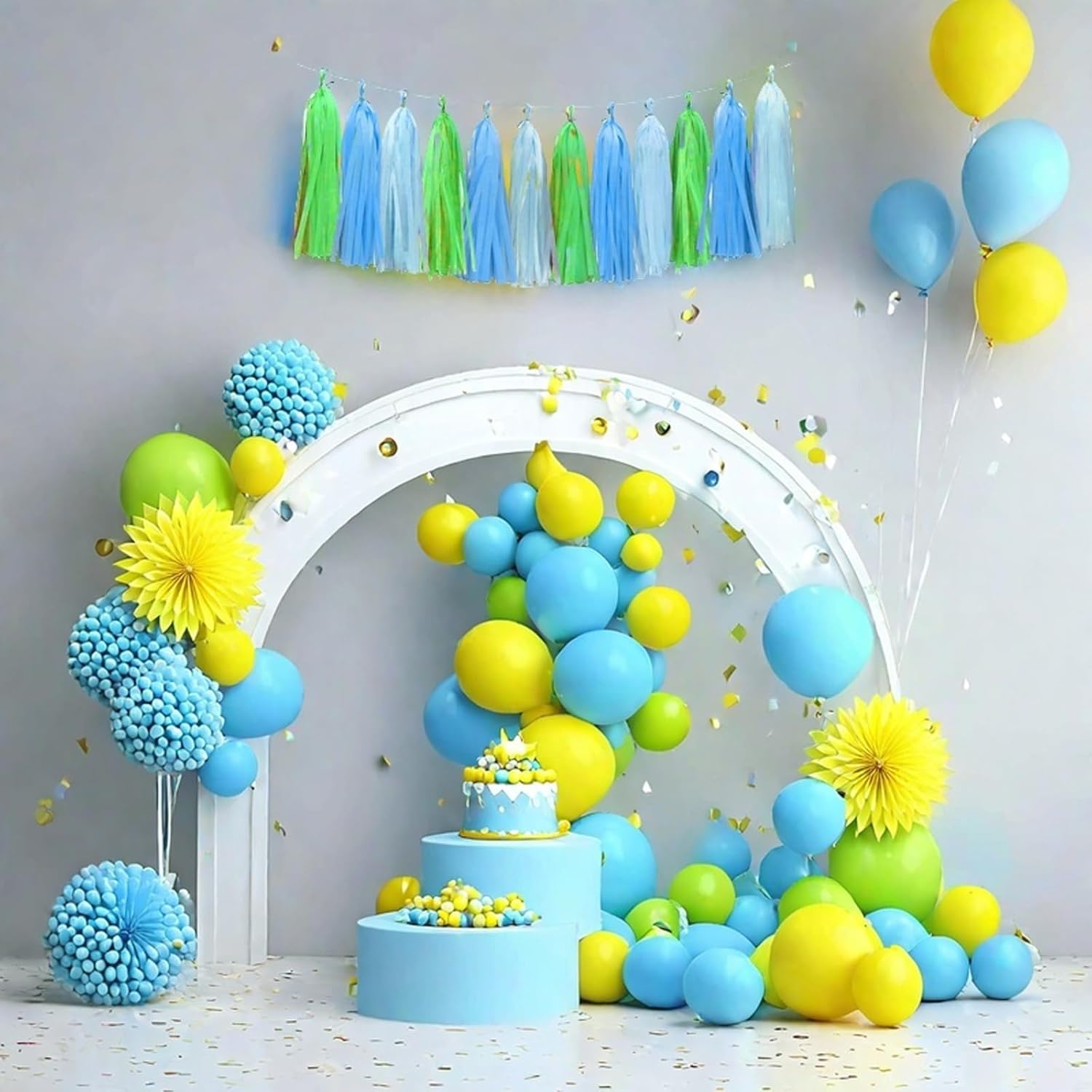 • Color : Blue Light Blue and Green Tassel Garland Banner