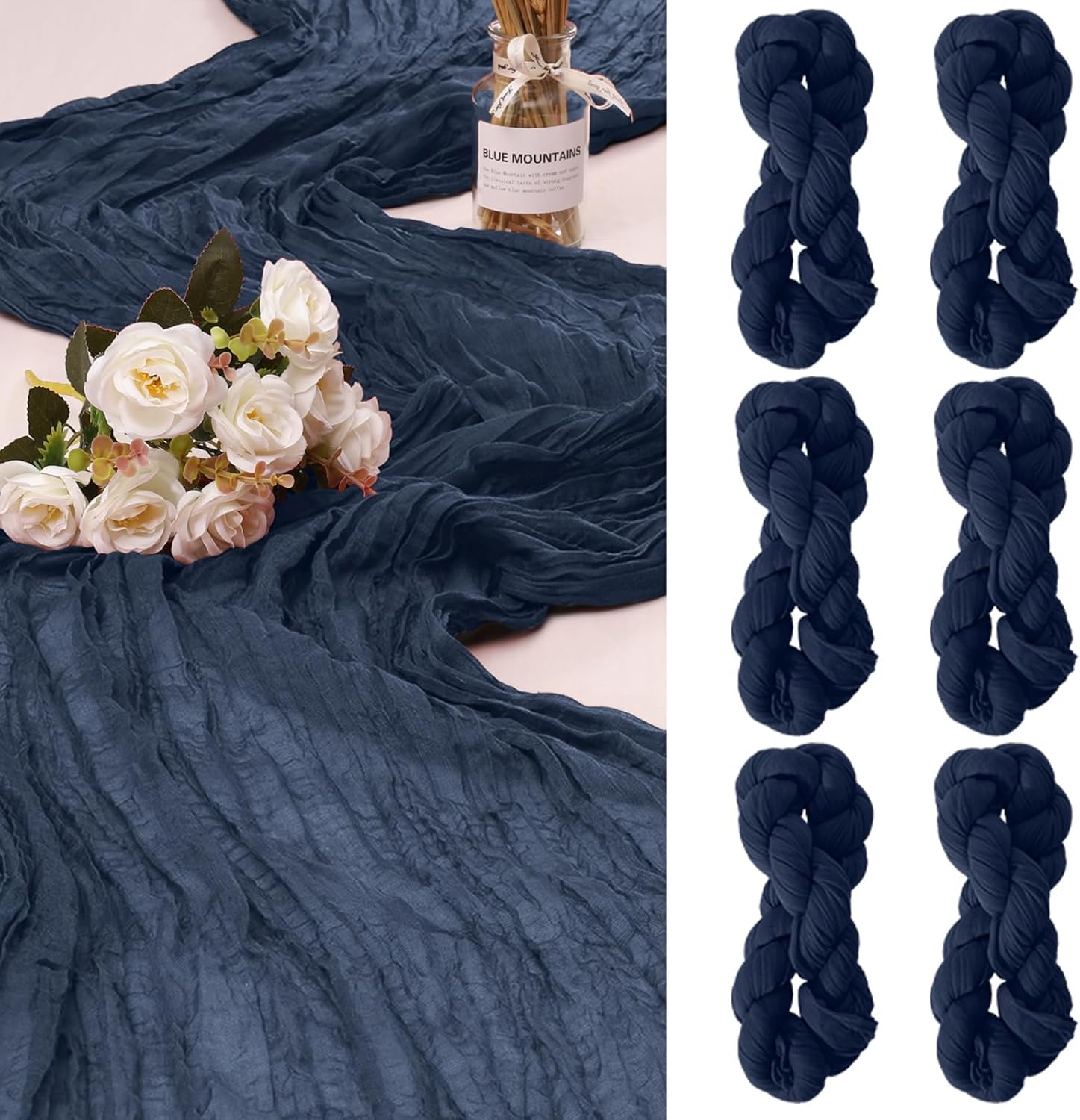 6 Pack Cheesecloth Table Runner 10Ft Christmas Gauze Boho Table Runners for Wedding Decor Bridal Shower Decorations Baby Shower Party(35" x 120")