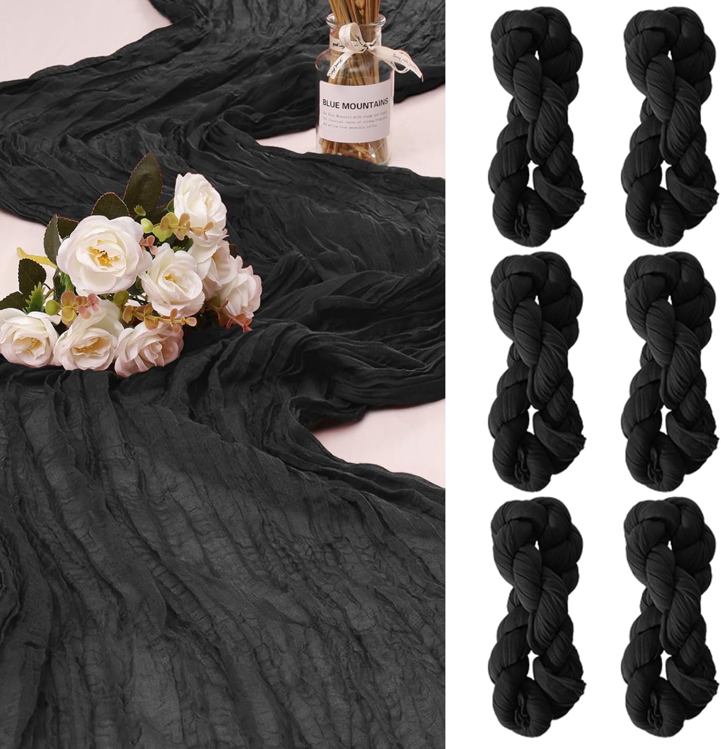 • 【Soft Material】: Made of high quality polyester, soft to touch, comfortable and durable. Wrinkled design cheese cloth farbic, delicate edges and stitches, adopts seamless technique makes this sheer table runner more graceful than traditional fabrics. Our cheesecloth wedding table runners are durable, the colour stays for a long time, does not fade and can be reused.