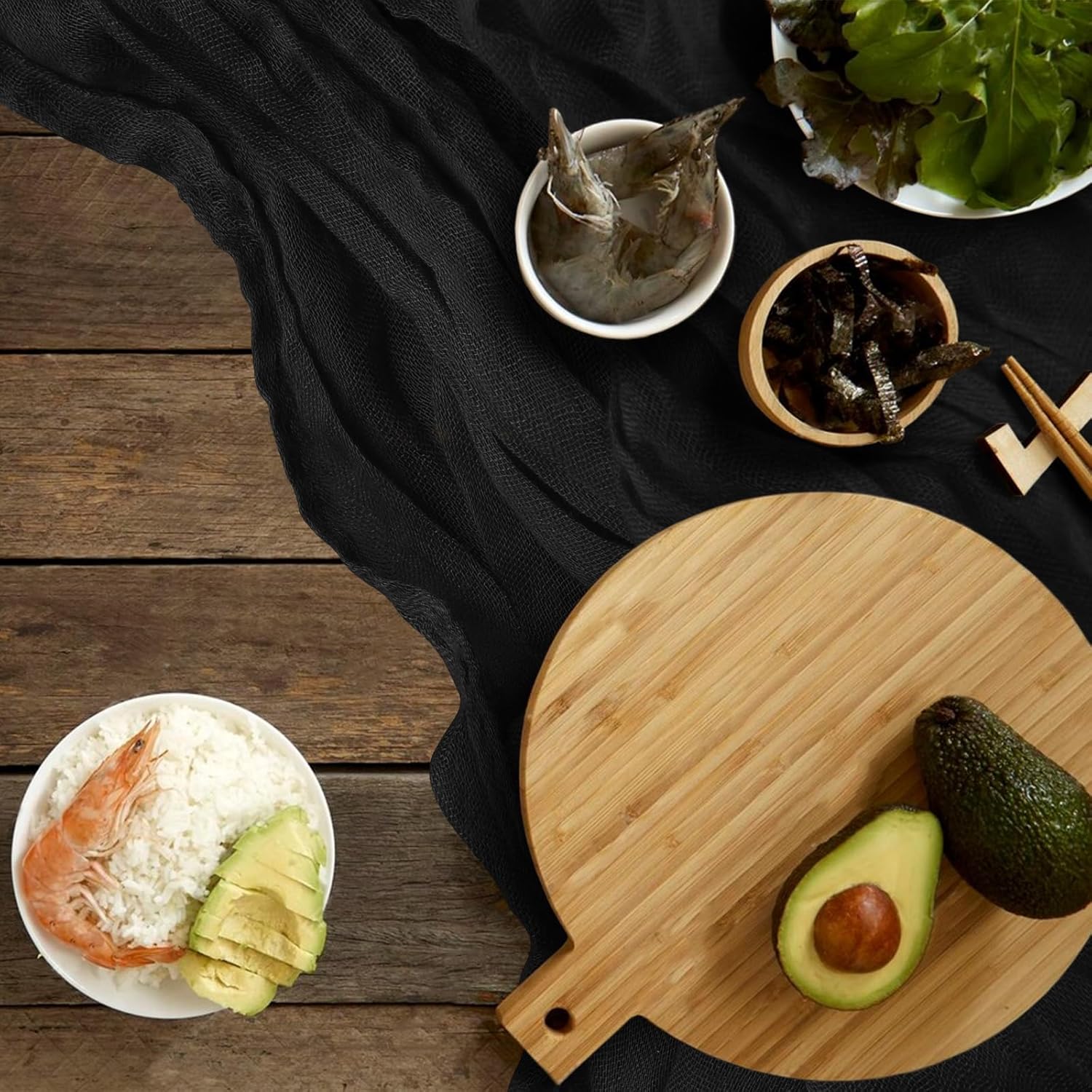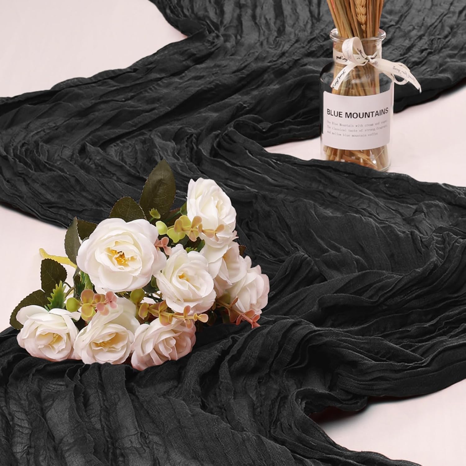 • 【Soft Material】: Made of high quality polyester, soft to touch, comfortable and durable. Wrinkled design cheese cloth farbic, delicate edges and stitches, adopts seamless technique makes this sheer table runner more graceful than traditional fabrics. Our cheesecloth wedding table runners are durable, the colour stays for a long time, does not fade and can be reused.