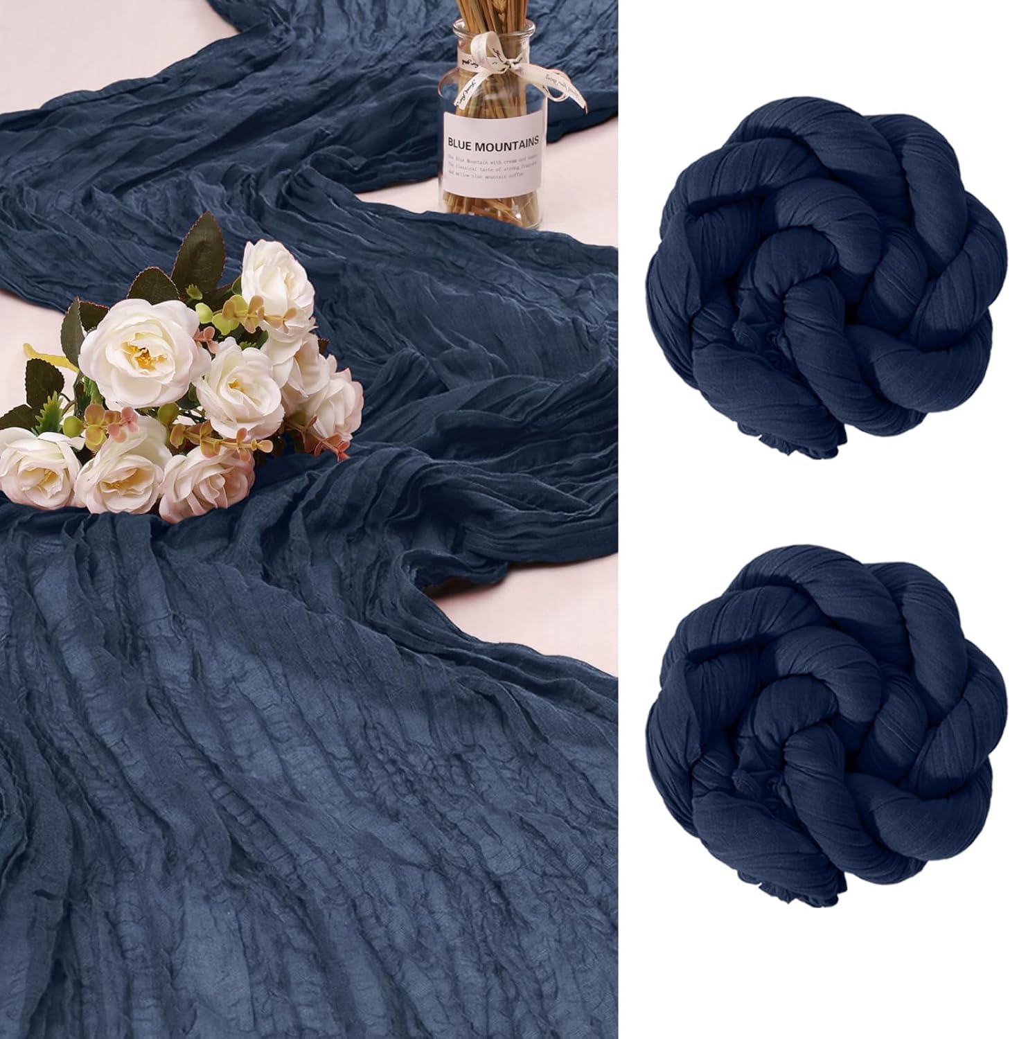 • 【Soft Material】: Made of high quality polyester, soft to touch, comfortable and durable. Wrinkled design cheese cloth farbic, delicate edges and stitches, adopts seamless technique makes this sheer table runner more graceful than traditional fabrics. Our cheesecloth wedding table runners are durable, the colour stays for a long time, does not fade and can be reused.