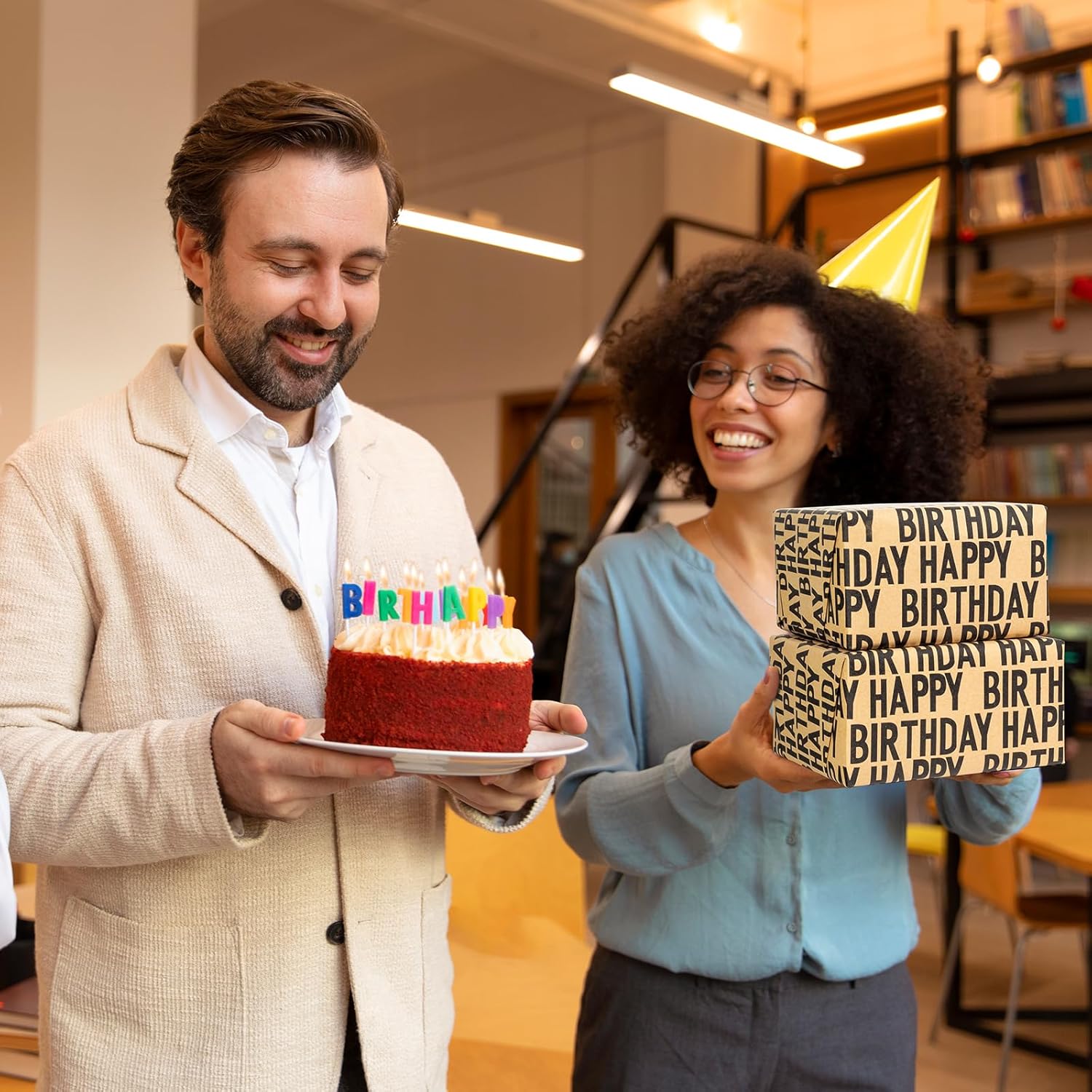• MODERN BIRTHDAY WRAPPING PAPER: Featuring sleek black Happy Birthday text on classic kraft paper, combines a rugged yet sophisticated look. It’s the perfect pick for men—modern, minimal, and timeless, making every gift look sharp and classy