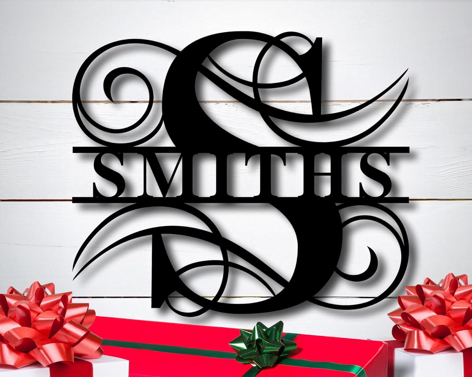 Personalized Metal Name Signs, Split Letter Monogram Wall Decor, Custom Last Name Sign, Family Name Sign for Outdoor, Personalized Wedding Gift, Garden Decor, Metal Wall Art, Housewarming Gift (MonogramDesign_6)