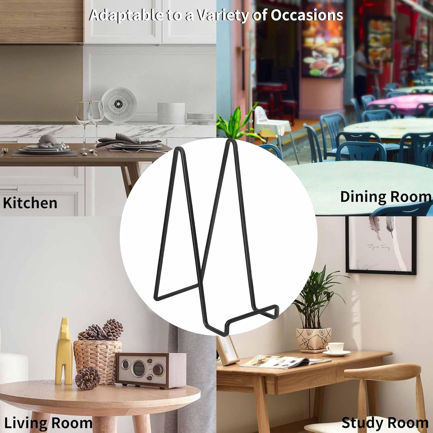 • Versatile: Metal frame holder stands are great for displaying and storing decorative plates, tablets, photos, artwork, records, recipes, tablets, wedding table number, menus, and more