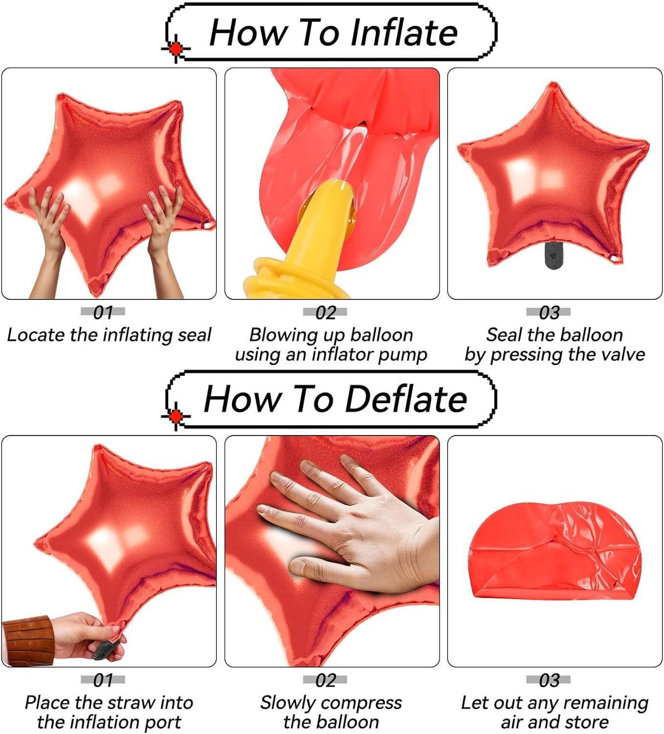 • 【Effortless Setup】Inflate with helium or air using a pump and secure easily for polished decor. These red blue silver Star Foil balloons are simple to assemble and reusable for multiple events, making decorating quick and effortless.