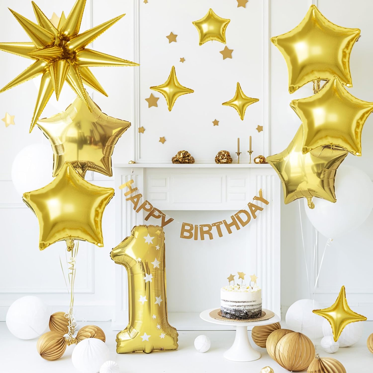 16 Pcs Gold Star Balloons, 22/18/10 Inch Foil Balloons, Four-Pointed Balloon for Kids Birthday Graduation Celebration Wedding Baby Shower 16 Pcs Decorations