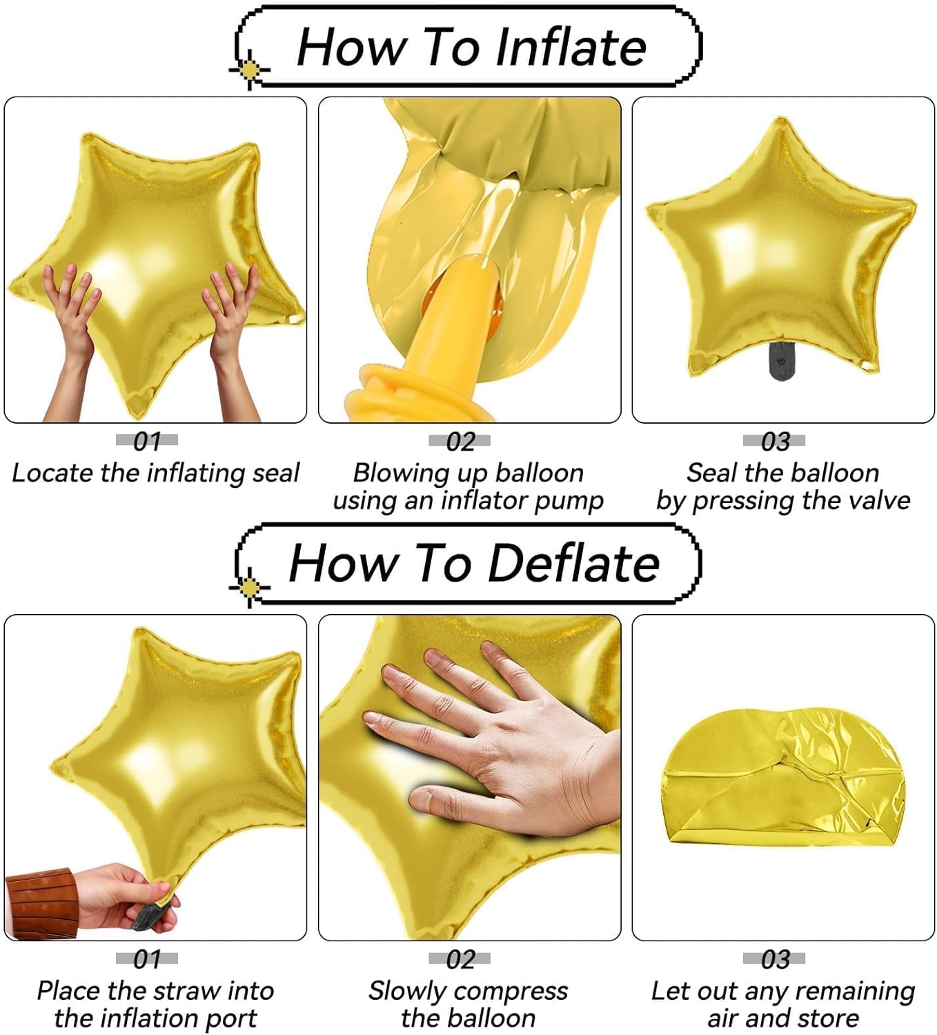• 【Suitable for All Occasions】These foil balloons are ideal for star decorations, birthday parties, weddings, baby showers, graduations, and gender reveal decorations, adding an eye-catching flair to any occasion, these star foil balloons complement any theme. Use them as a focal point or part of your balloon arch, making your special day unforgettable.