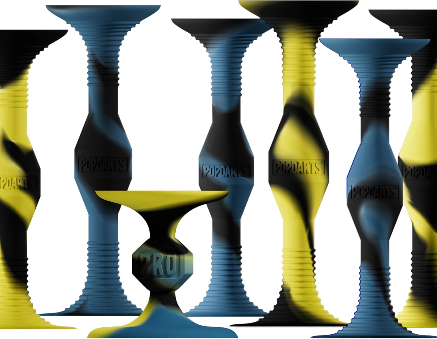 • WHAT’S INCLUDED IN A SET? 3 Black/Blue Swirled Popdarts | 3 Black/Yellow Swirled Popdarts | 1 Black/Yellow/Blue Target Marker | 4 Mesh Carrying Bag with rules printed right on the bag
