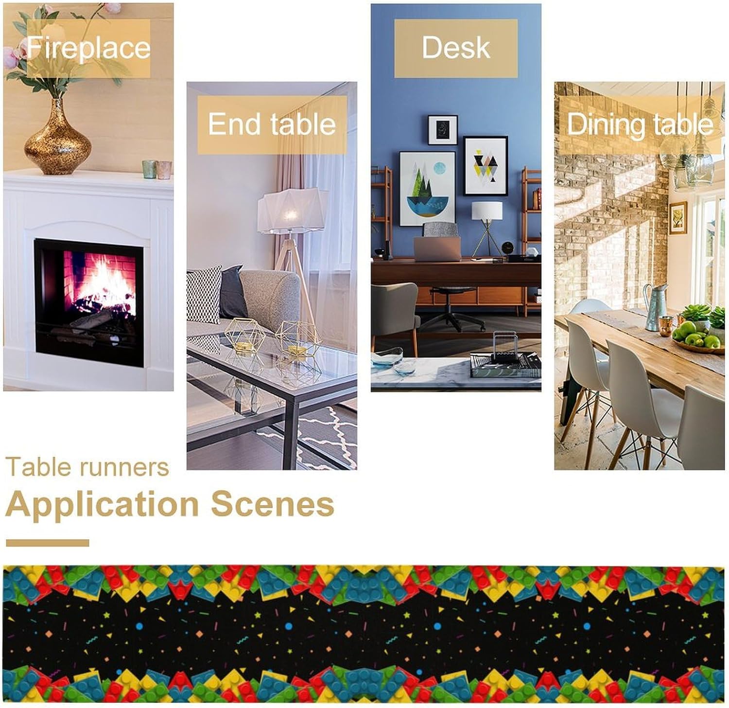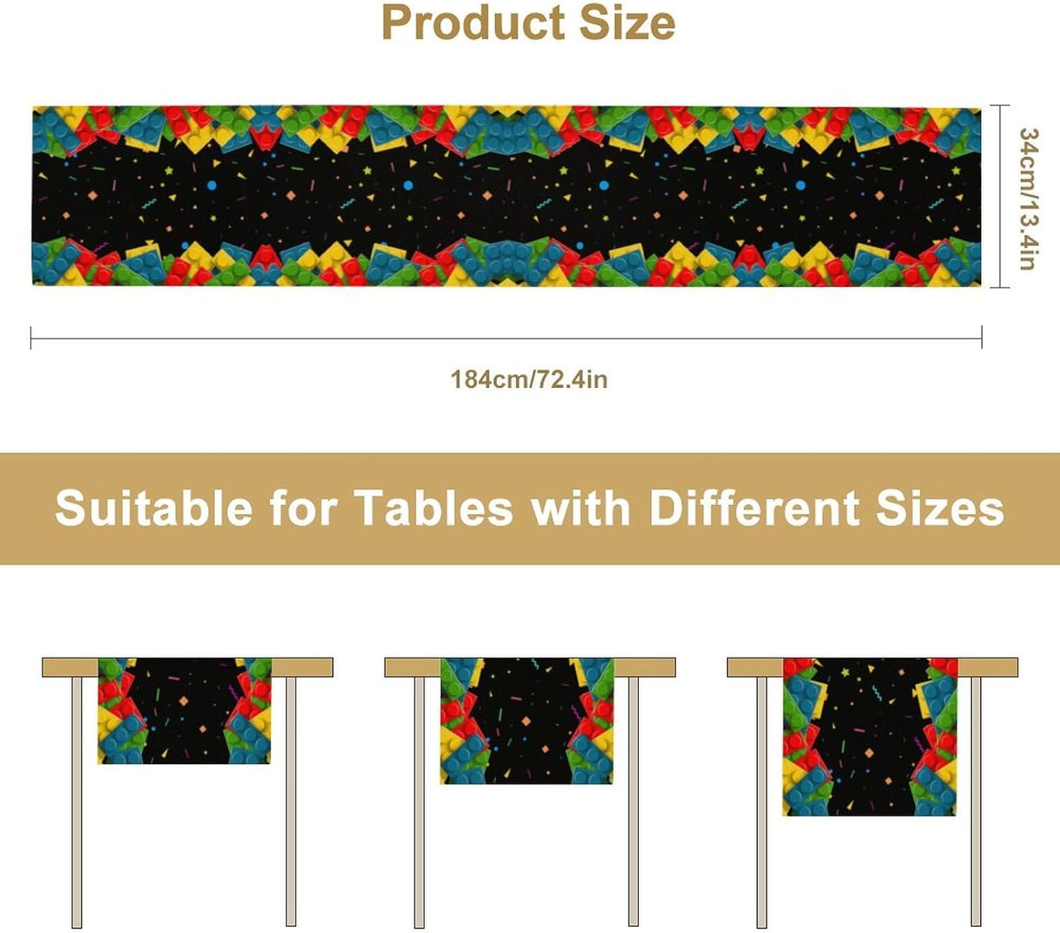 Building Blocks Colorful Blocks Table Runner for Kids Teens Bedroom Living Room Kitchen Birthday Party Decor - 13x36 Inch