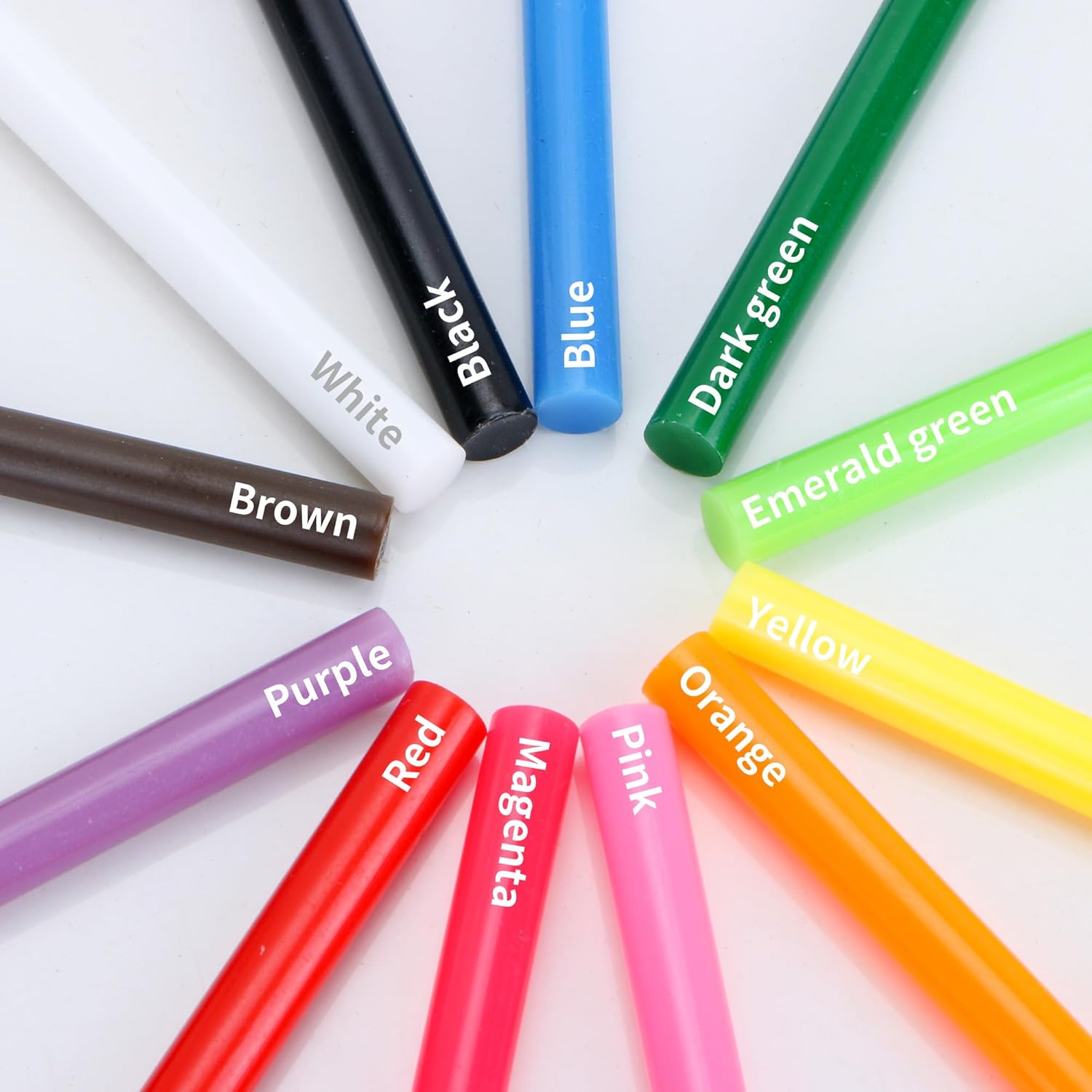 • Colored Glue Sticks Value Pack: 96 pcs 12 Colors hot glue Sticks Mini Size, 7mm/0.27 inch diameter and 100mm/4 inchs glue sticks tool, compatible with most glue guns on the market.