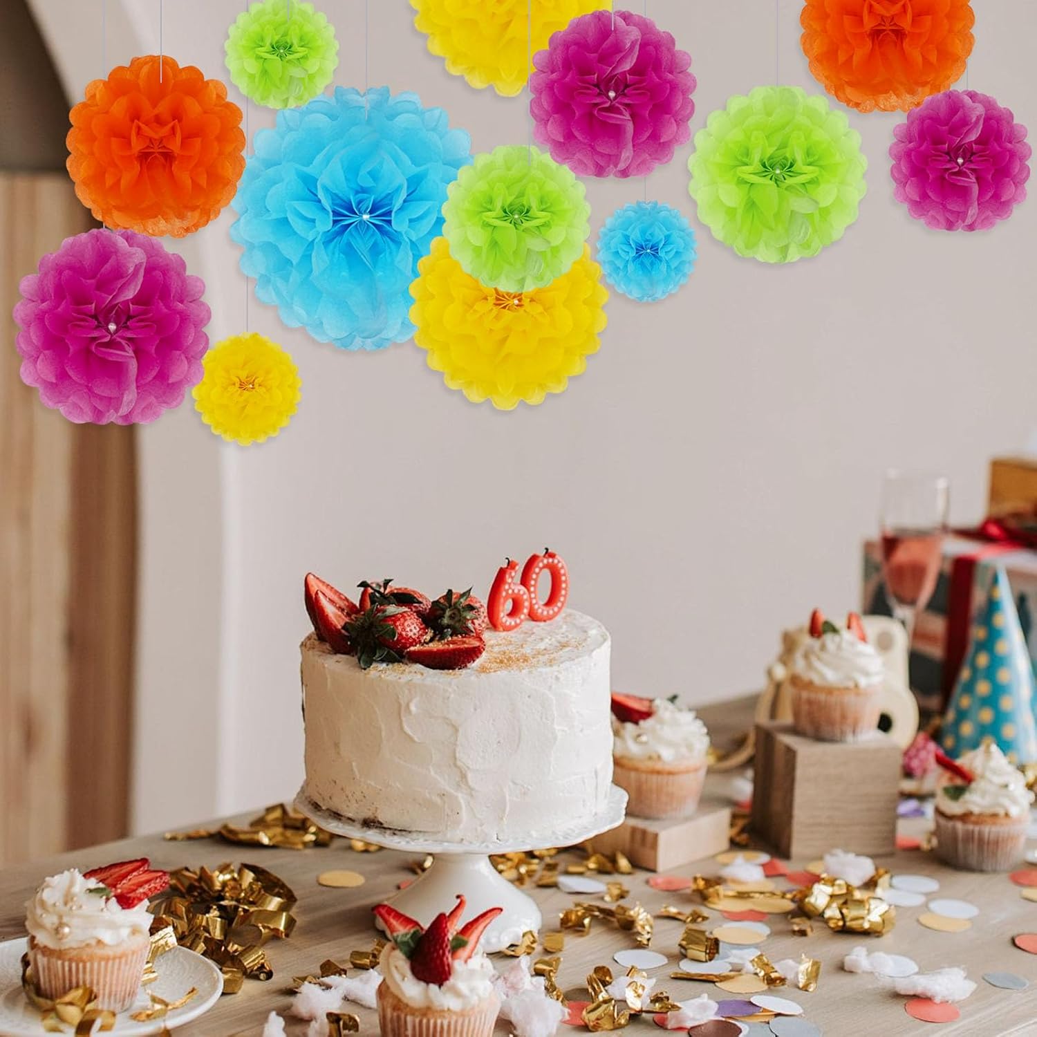 Tissue Paper Pom Poms, Colorful Tissue Paper Flowers, Hanging Flower Balls for Easter Weddings Fiesta Parties Birthday Baby Showers Classroom Decoration (20Piece Set-6/10/12/14Inch)