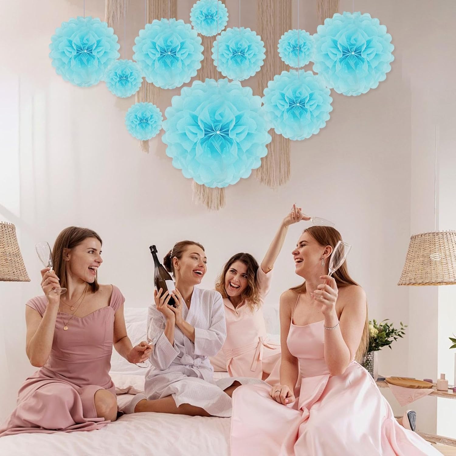 • 【Large Set】20 Pieces light blue paper flower balls include 6 of 6-inch, 6 of 10-inch, 5 of 12-inch, and 3 of extra-large 14 inch paper pom pom flowers.