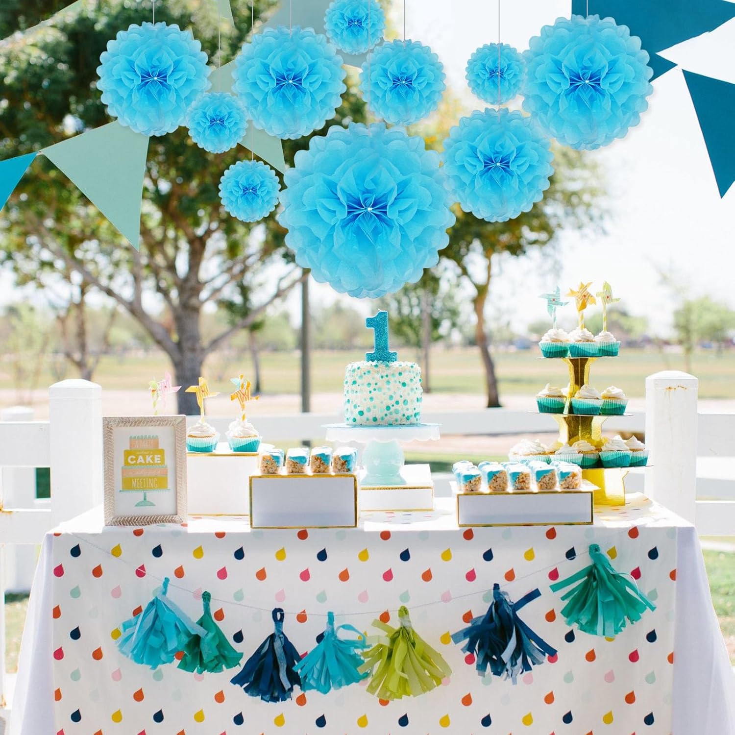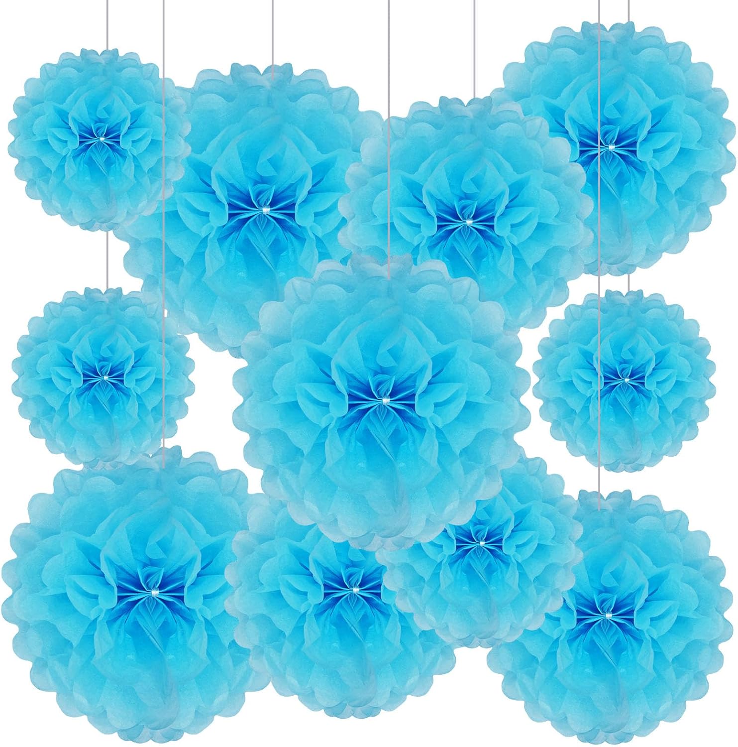 Tissue Paper Pom Poms, Blue Tissue Paper Flowers, Hanging Flower Balls for Weddings Fiesta Parties Birthday Baby Showers Classroom Bridal Shower Decoration (20Piece Set-6/10/12/14Inch)