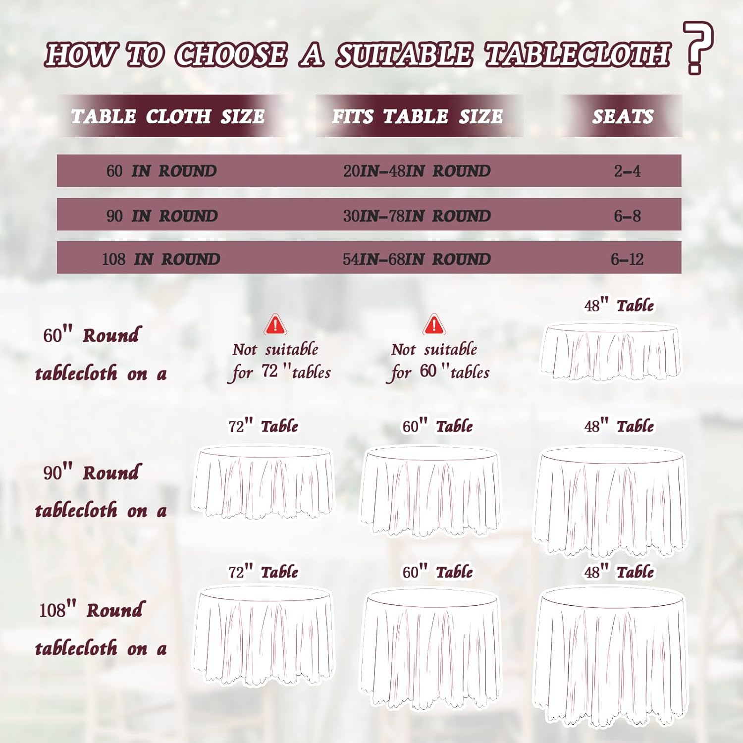 • Unique Design: The round tablecloths features a wavy edge sealing design, providing excellent brightness and a sense of sagging. It is a classic style with a touch of luxury and can be paired with table cushions and napkins to protect your precious table from scratches and stains, adding a touch of brightness to your home.