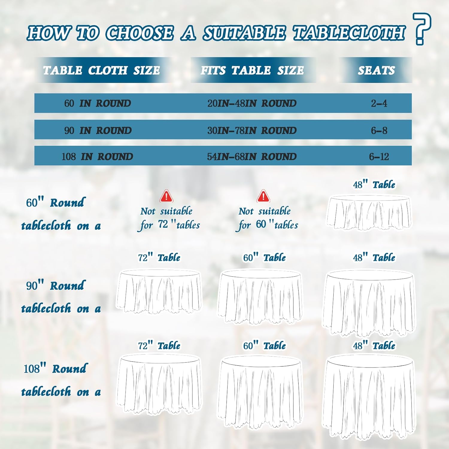 • Unique Design: The round tablecloths features a wavy edge sealing design, providing excellent brightness and a sense of sagging. It is a classic style with a touch of luxury and can be paired with table cushions and napkins to protect your precious table from scratches and stains, adding a touch of brightness to your home.