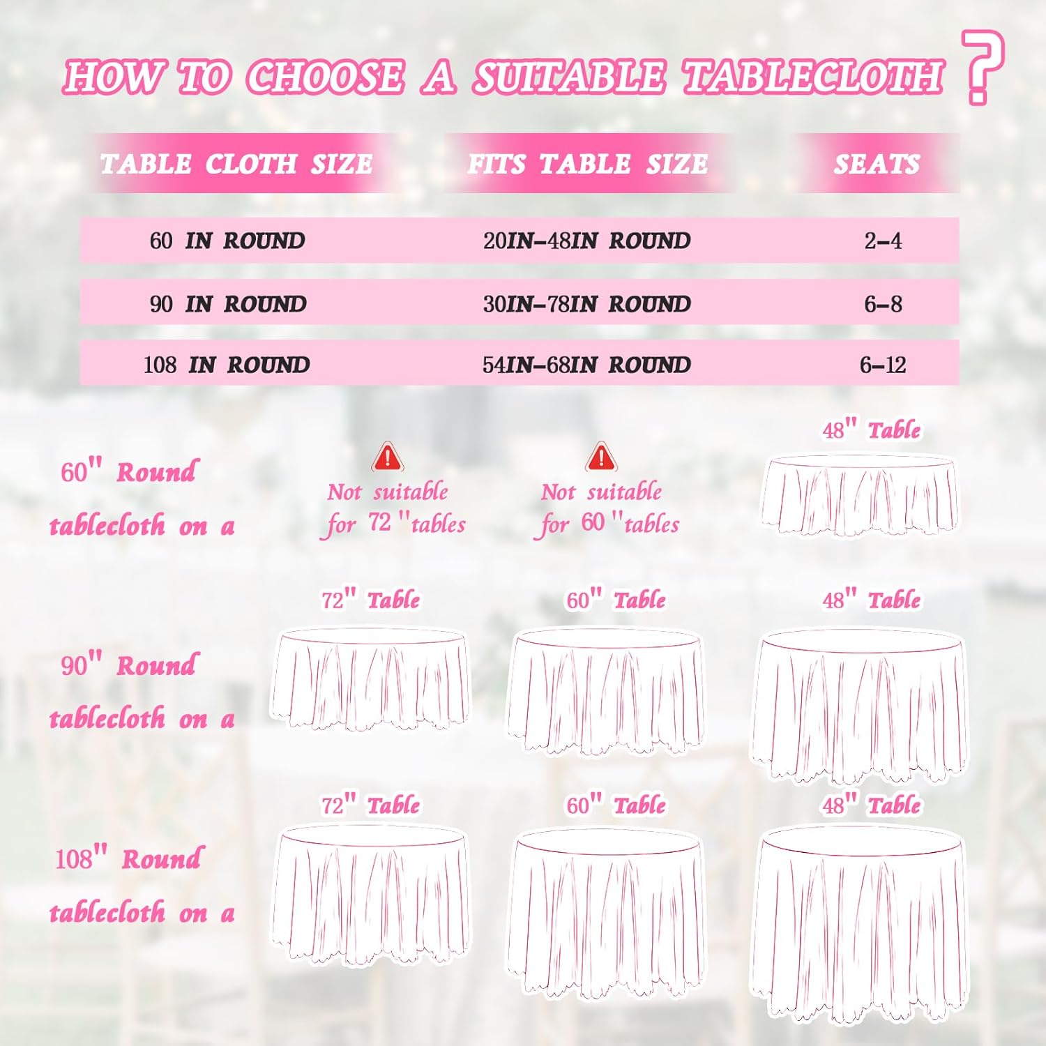 • Widely used scenarios: Round table cloth is suitable for wedding parties, dances, banquet events, birthday parties, restaurant tables, graduation parties, and daily dining tables. It can also be used as decorations for Halloween, Christmas, and Valentine's Day.