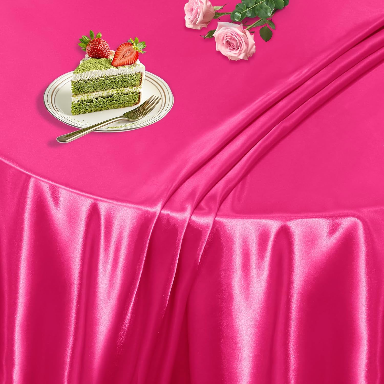 KKJIAF 1 Pack Round Table Cloths 90 Inch, Hot Pink Overlay Round Satin Table Cover, Silky Satin Dining Tablecloths for Wedding Buffet Parties Banquet Decoration
