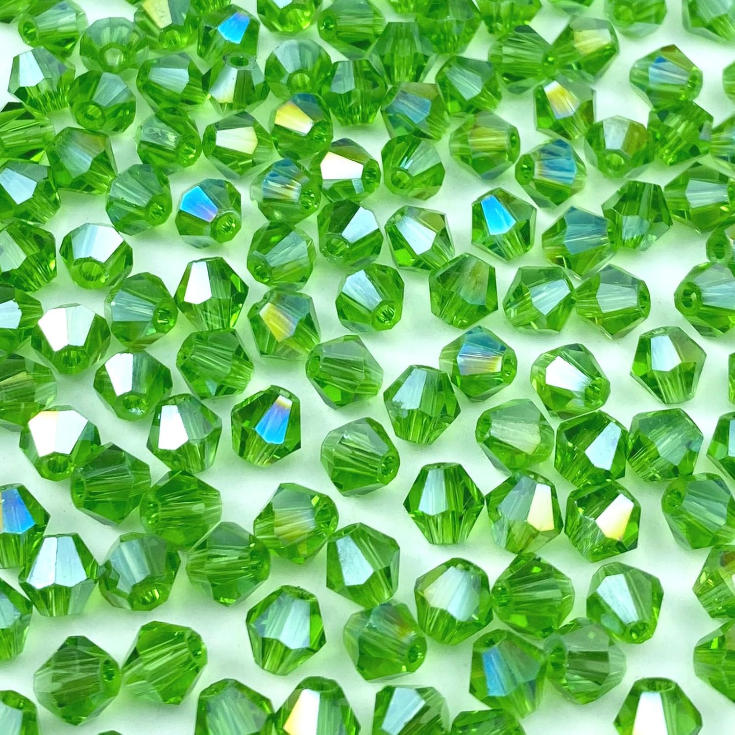 400pcs 4mm Bicone Crystal Glass Beads Loose Spacer Beads Faceted Craft Beads for Jewelry Making DIY Necklace Bracelet Earring Wind Chimes Suncatchers Ornamen(Grass Green AB)