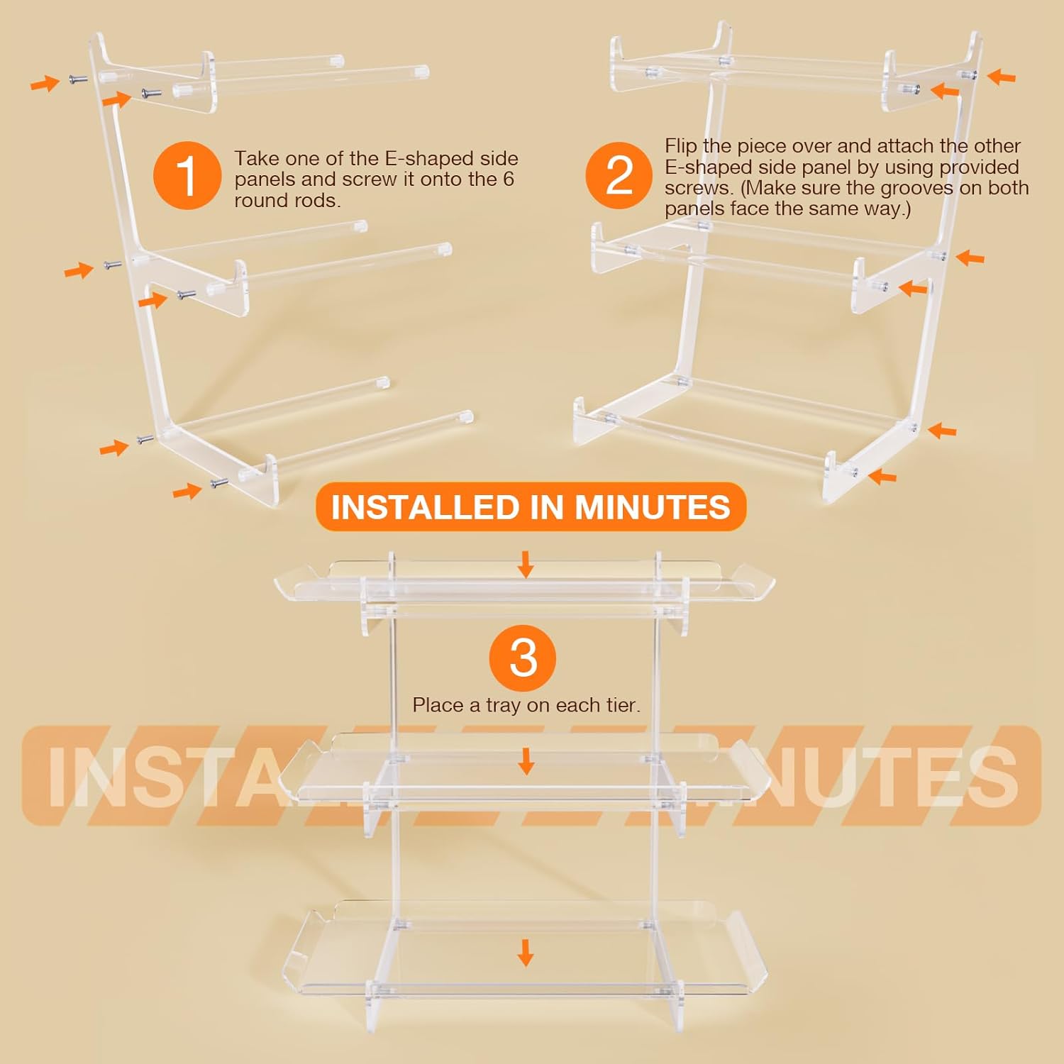 • Premium & Safe Construction:Crafted from food-grade, BPA-Free certified acrylic, the Bakzon 3 Tier Serving Tray ensures ultimate safety and durability. Its shatterproof design and non-slip E-shaped frame provide unmatched stability, making it perfect for displaying desserts, fruits, or appetizers—no tipping, no damage, just peace of mind.