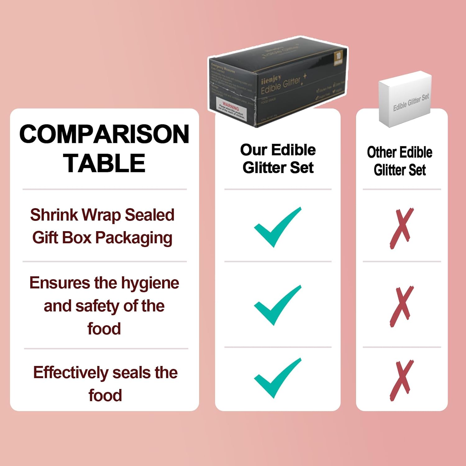 • ✔Secure Packaging - Employing shrink film packaging and resealable containers to preserve the freshness of edible glitter. If you have any concerns while placing your order, please feel free to reach out to us.