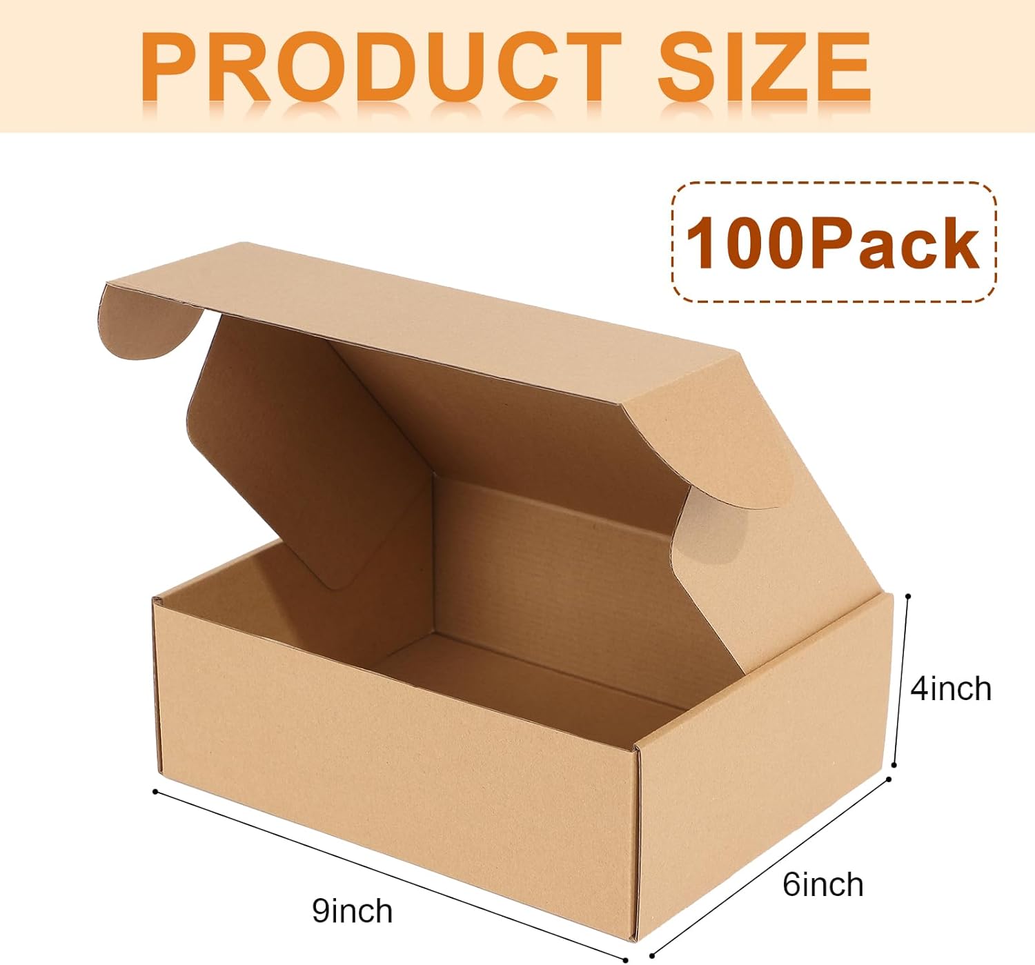 Qilery 100 Pcs Shipping Boxes Cardboard Gift Corrugated Cardboard Brown Boxes Mailer Packaging for Mailing Small Business Present (9 x 6 x 4 Inches)